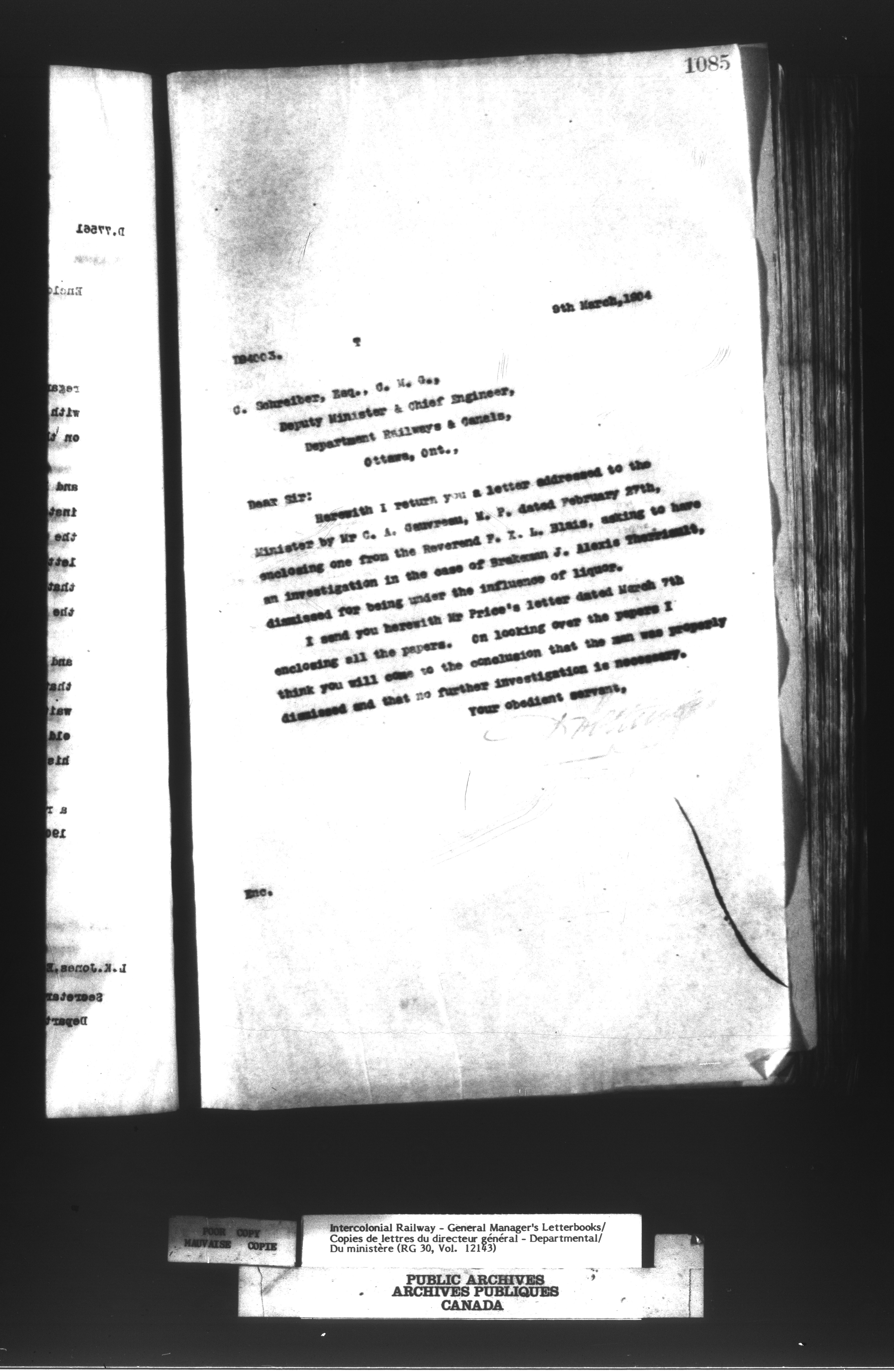 Canadian Government Railways : Office of the General Manager, Outward correspondence with Department of Railways and Canals, 1893-1913 - 12479