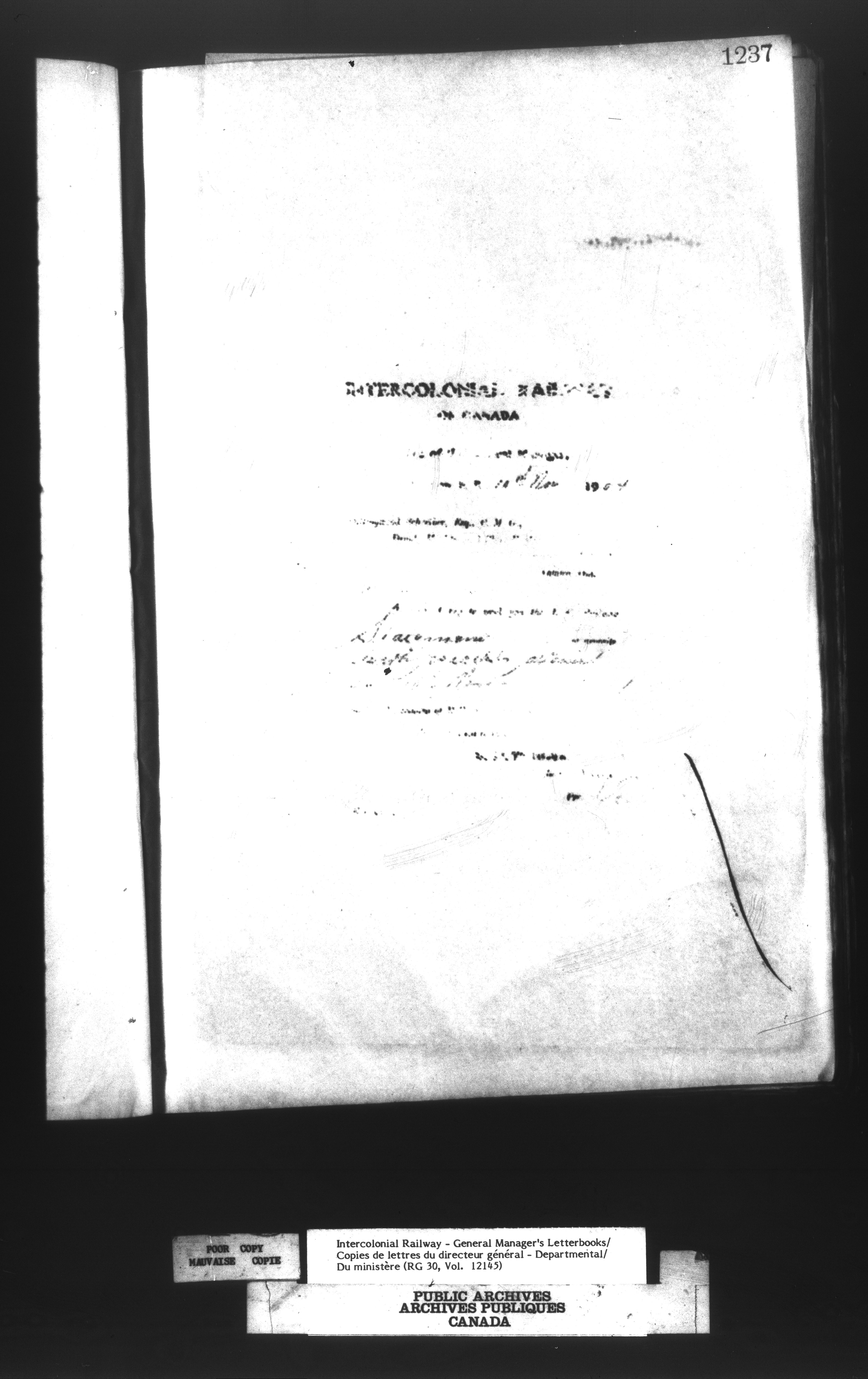 Canadian Government Railways : Office of the Chief Superintendent, Outward correspondence : C-12481