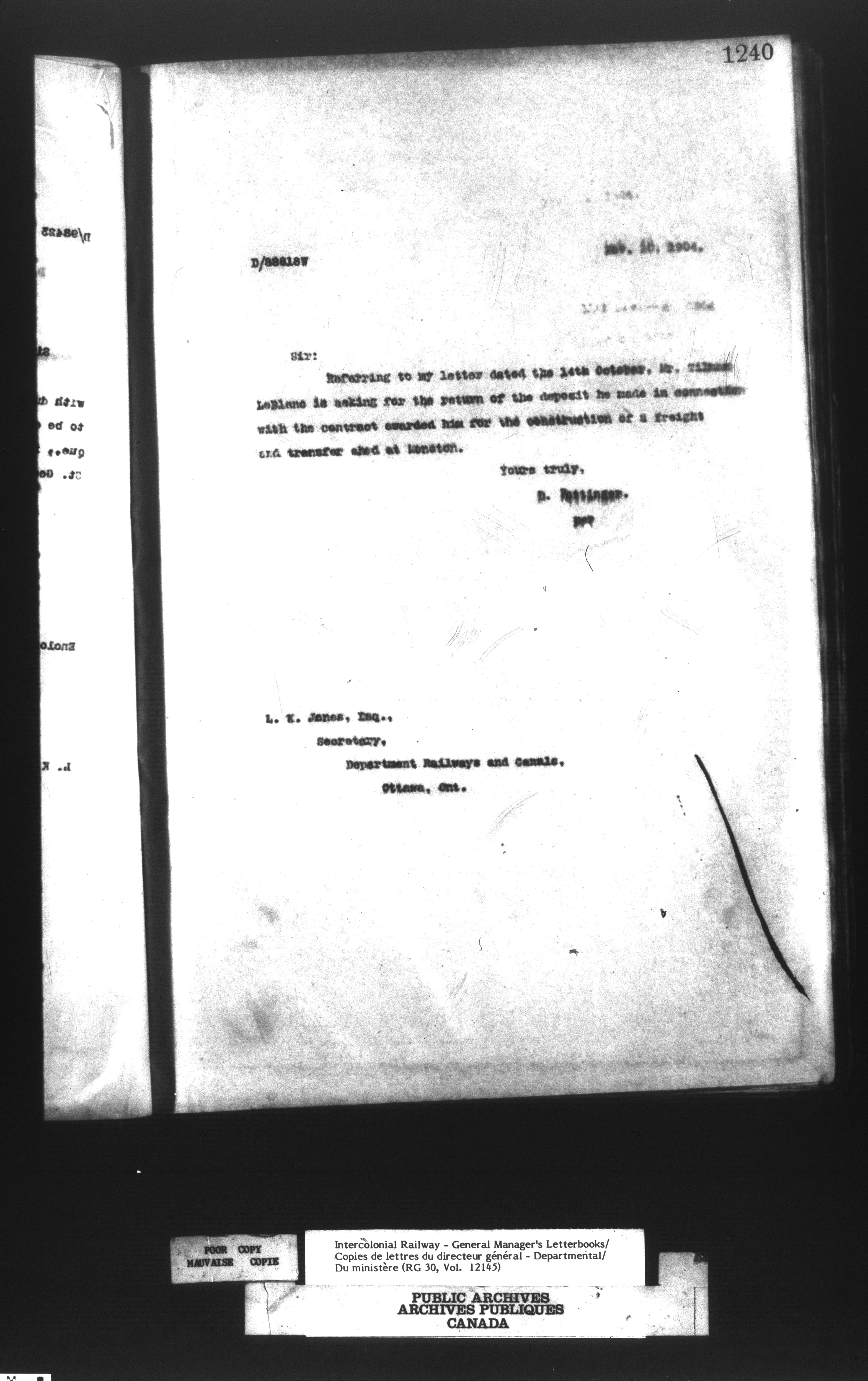 Canadian Government Railways : Office of the Chief Superintendent, Outward correspondence : C-12481