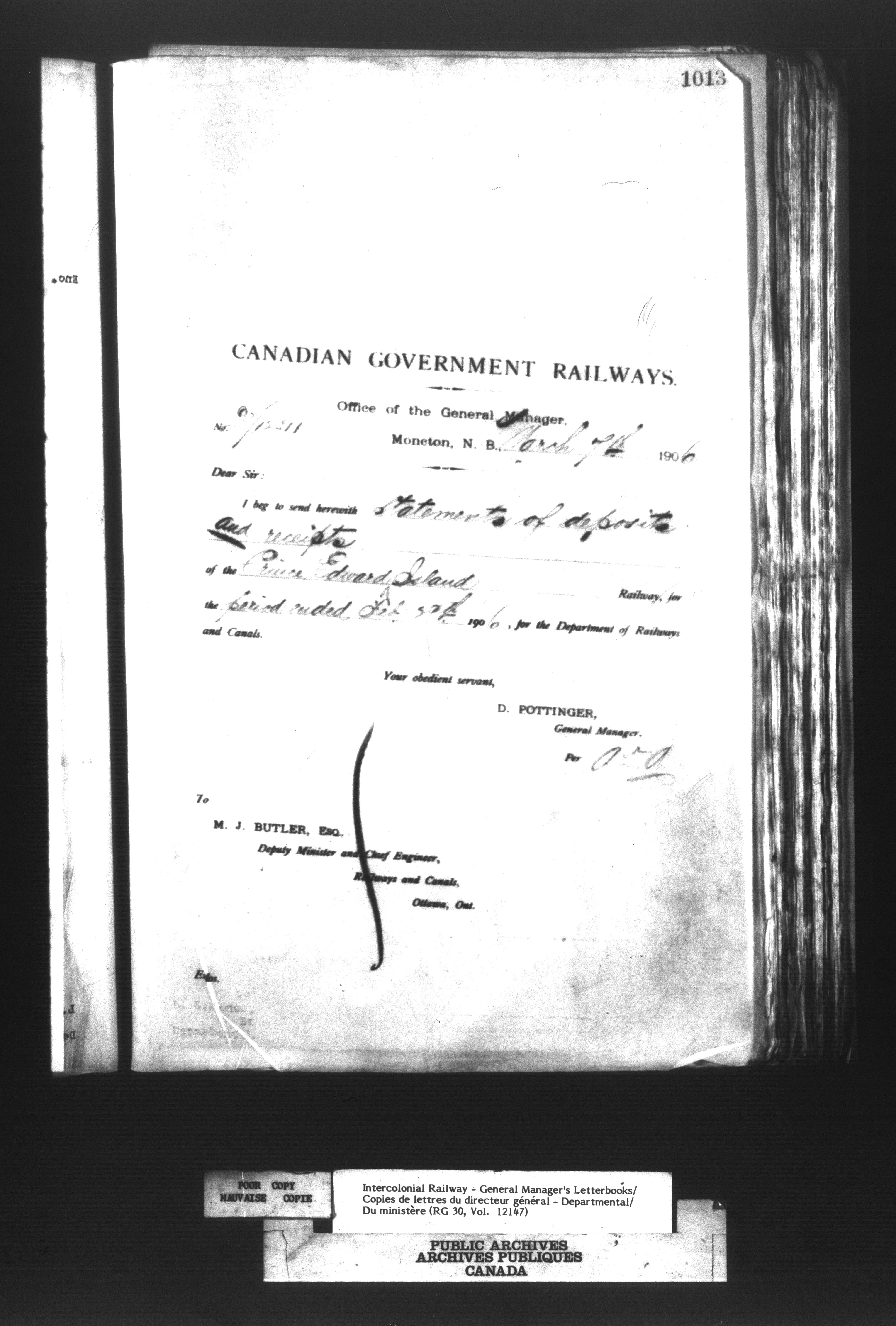 Canadian Government Railways : Office of the General Manager, Outward correspondence with Department of Railways and Canals, 1893-1913 - 12482