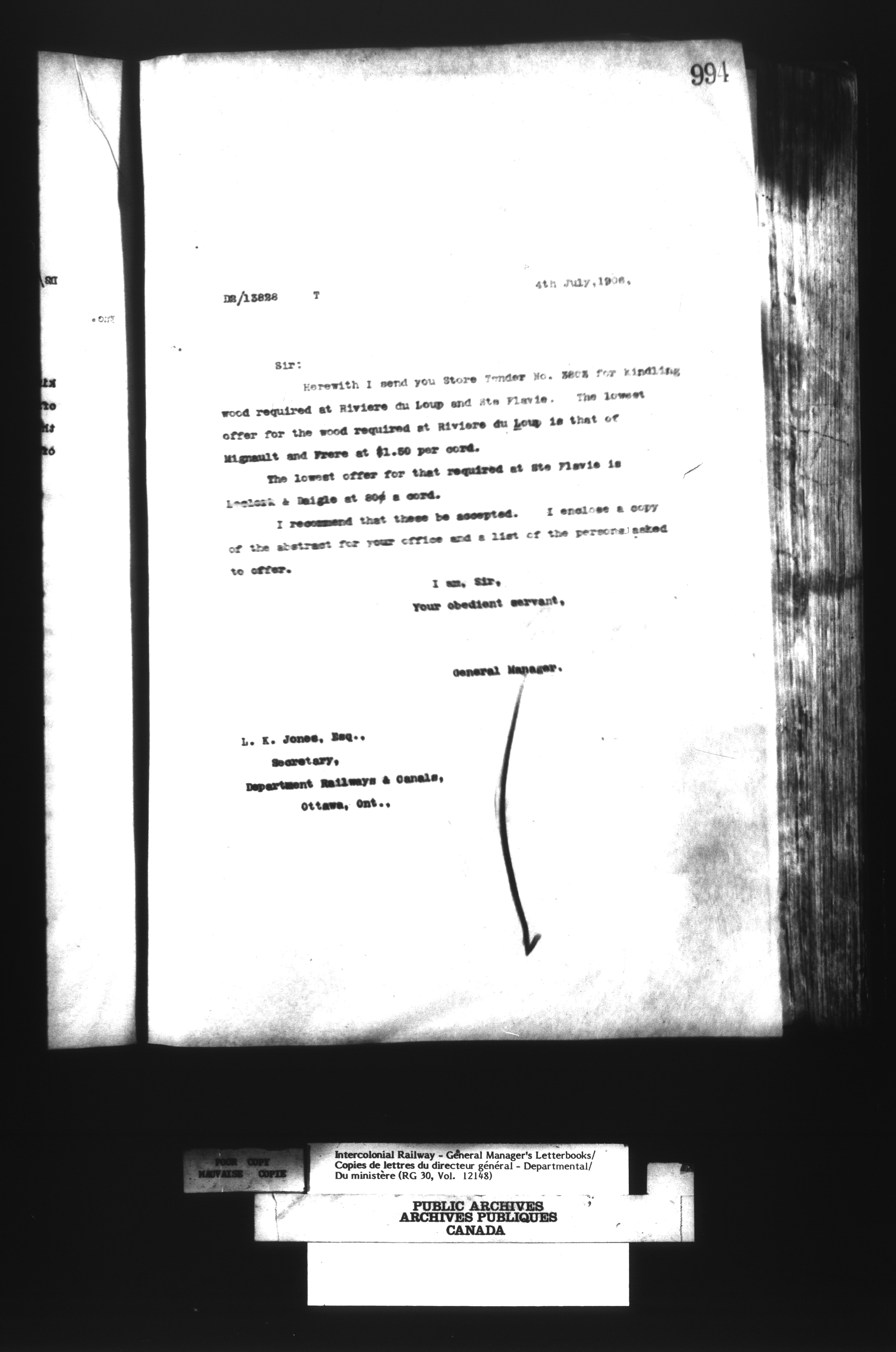 Canadian Government Railways : Office of the General Manager, Outward correspondence with Department of Railways and Canals, 1893-1913 - 12483