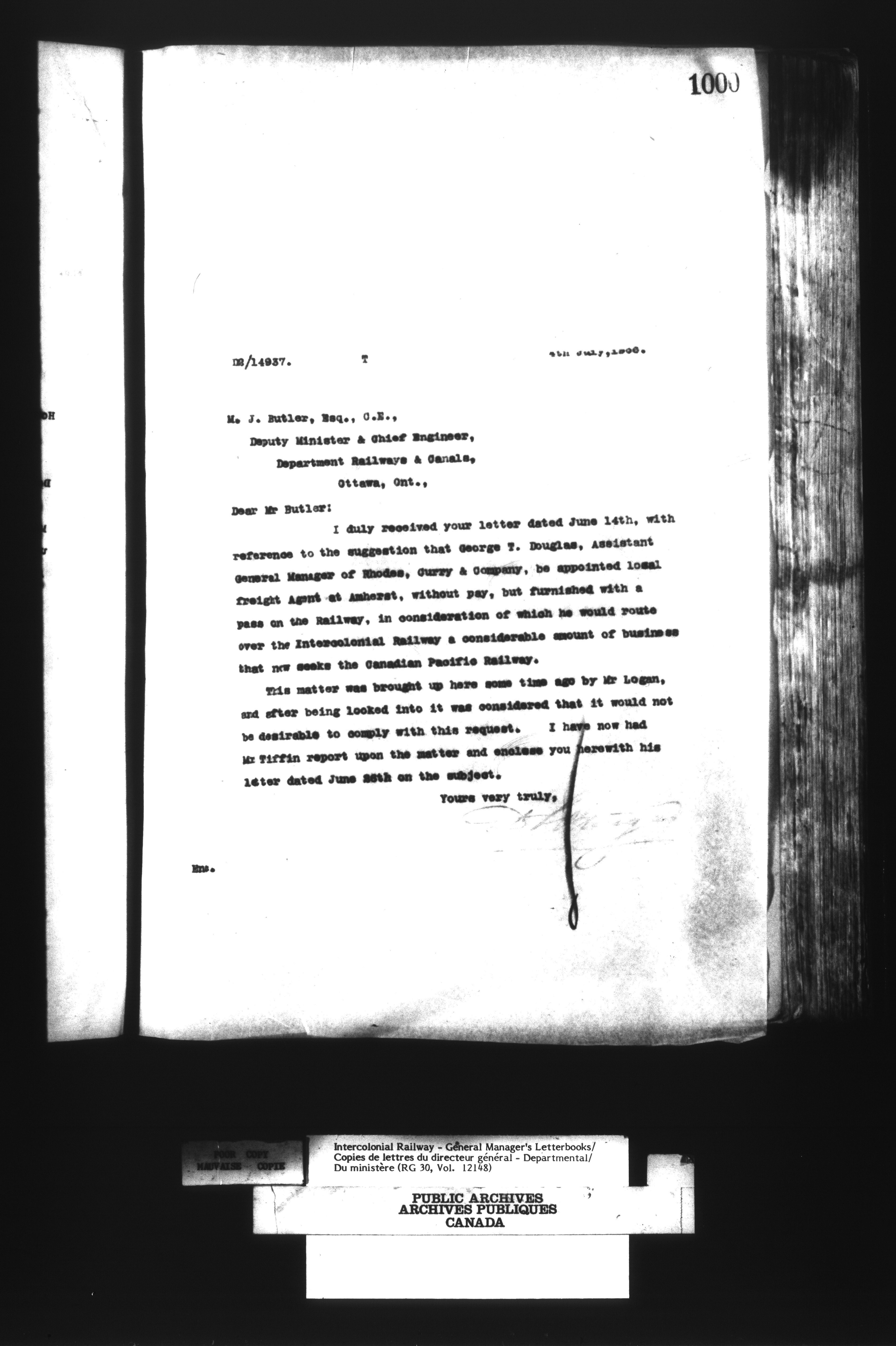 Canadian Government Railways : Office of the General Manager, Outward correspondence with Department of Railways and Canals, 1893-1913 - 12483
