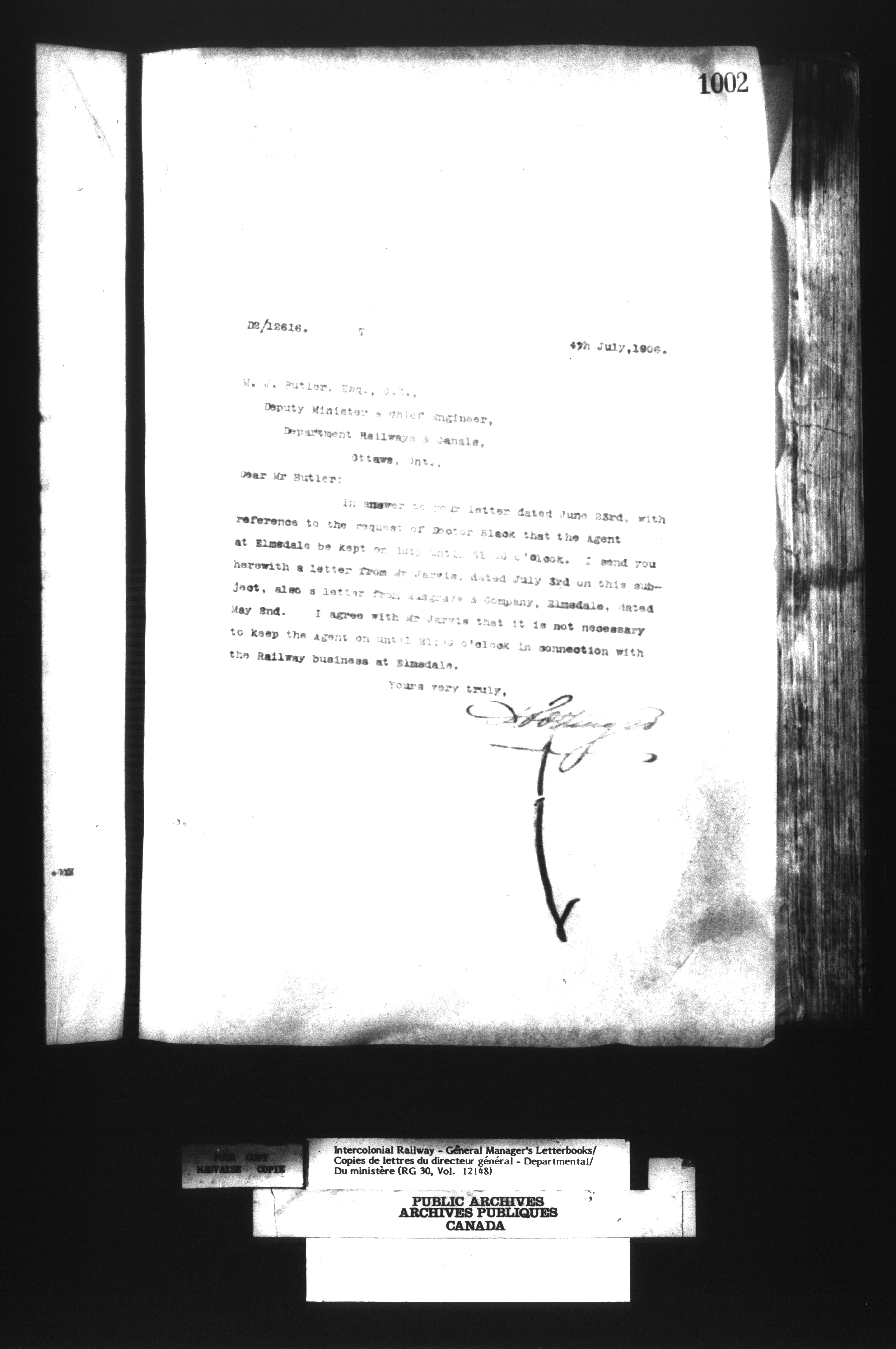 Canadian Government Railways : Office of the General Manager, Outward correspondence with Department of Railways and Canals, 1893-1913 - 12483