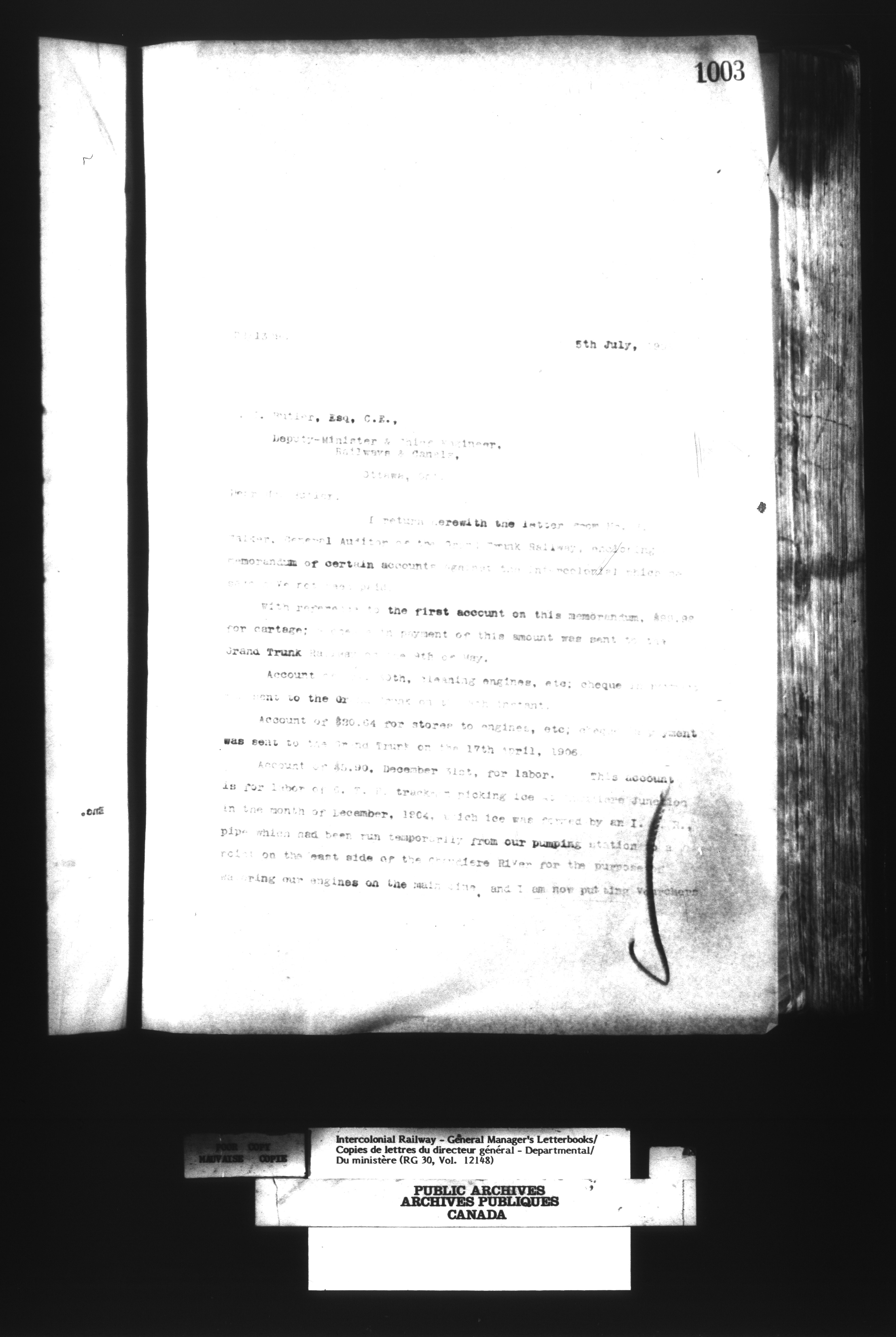 Canadian Government Railways : Office of the General Manager, Outward correspondence with Department of Railways and Canals, 1893-1913 - 12483