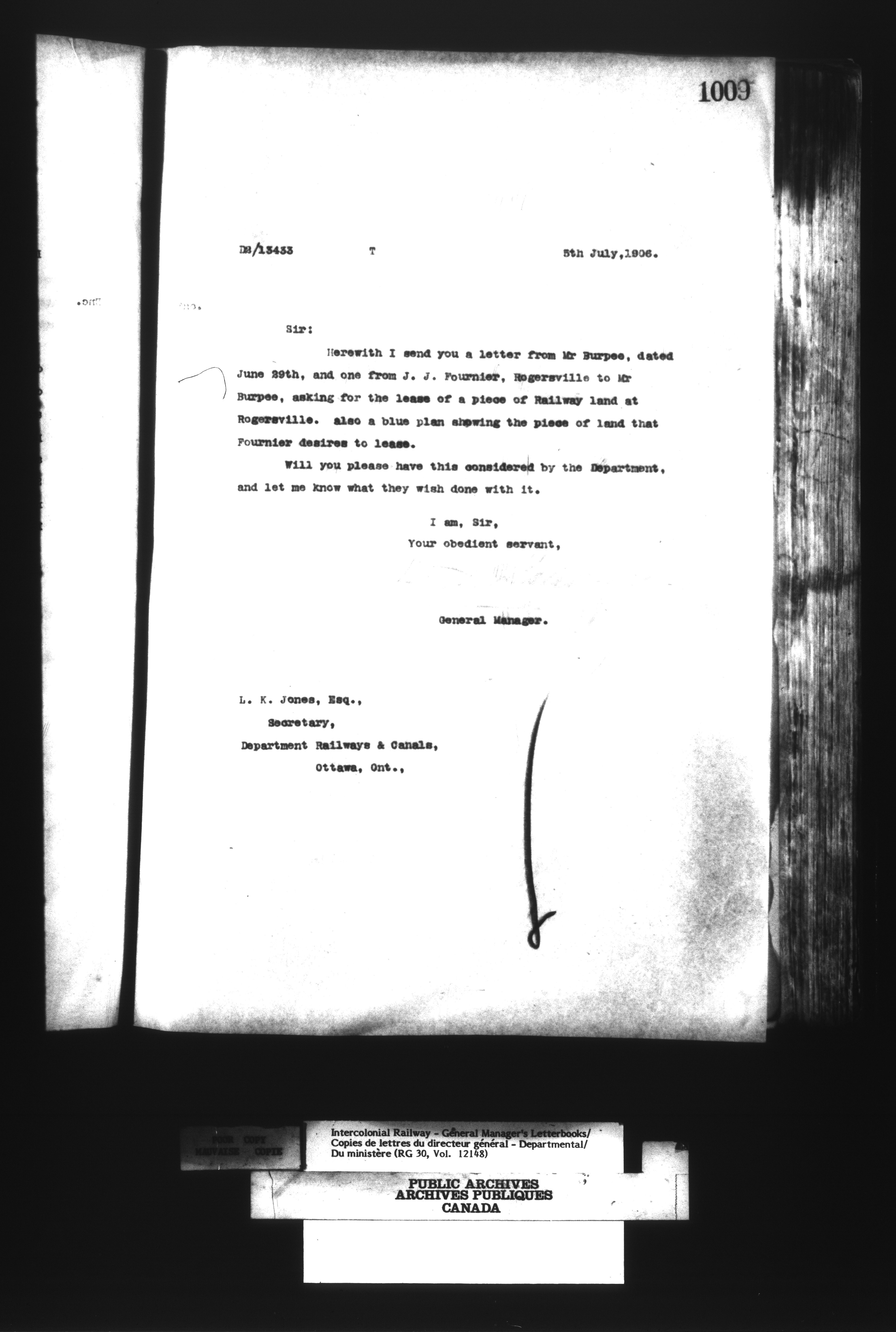 Canadian Government Railways : Office of the General Manager, Outward correspondence with Department of Railways and Canals, 1893-1913 - 12483