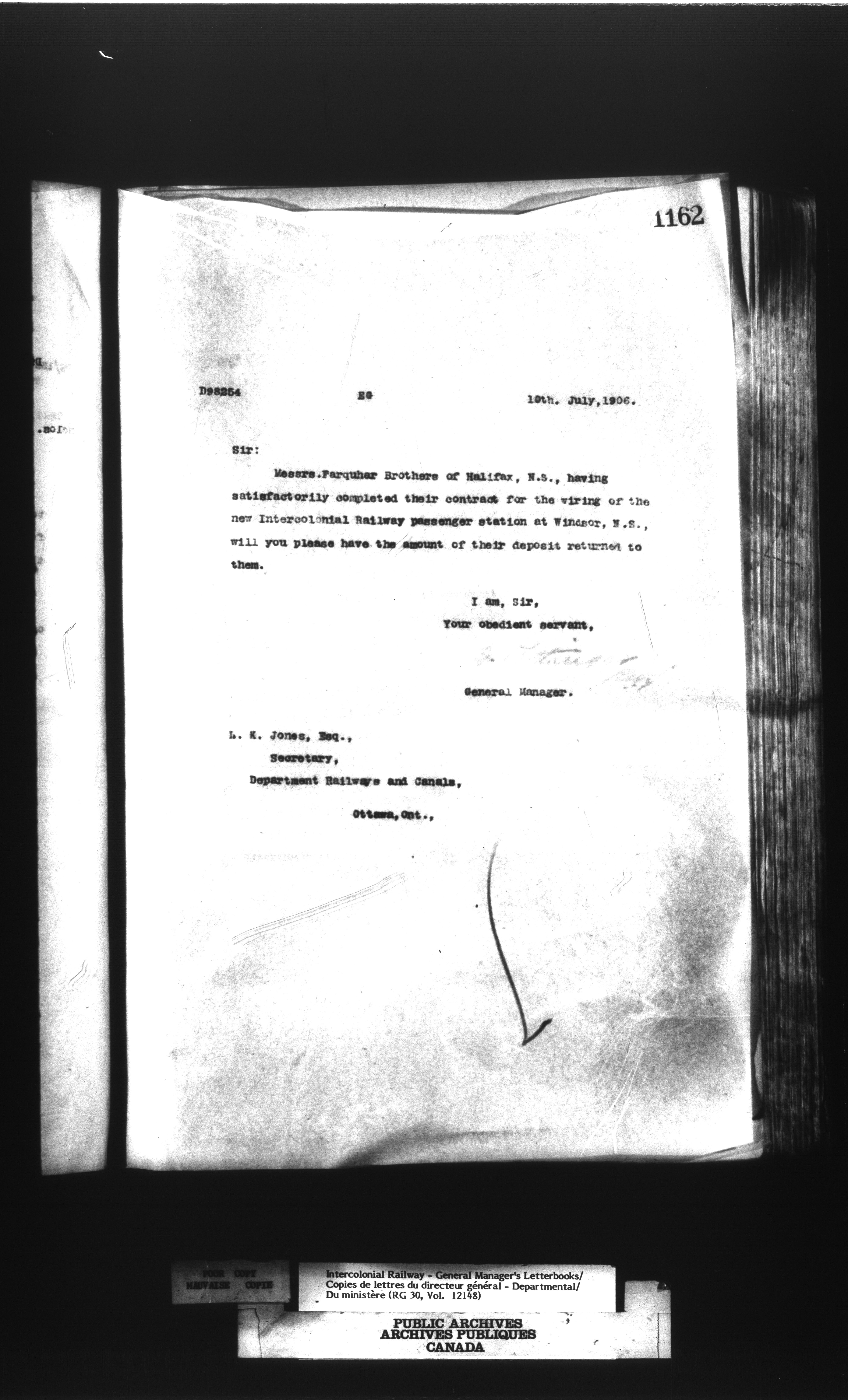 Canadian Government Railways : Office of the General Manager, Outward correspondence with Department of Railways and Canals, 1893-1913 - 12484