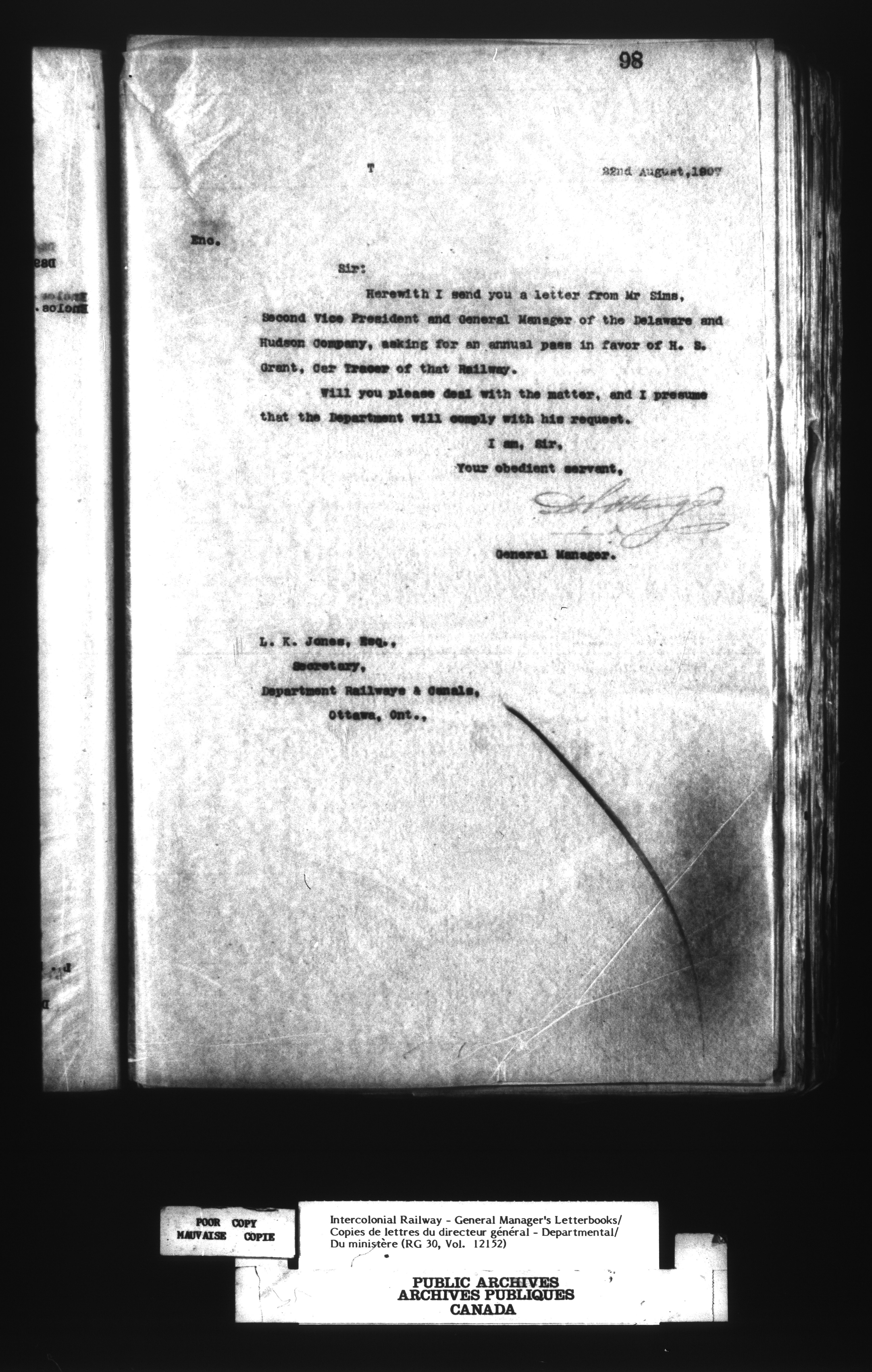 Canadian Government Railways : Office of the General Manager, Outward correspondence with Department of Railways and Canals, 1893-1913 - 12486