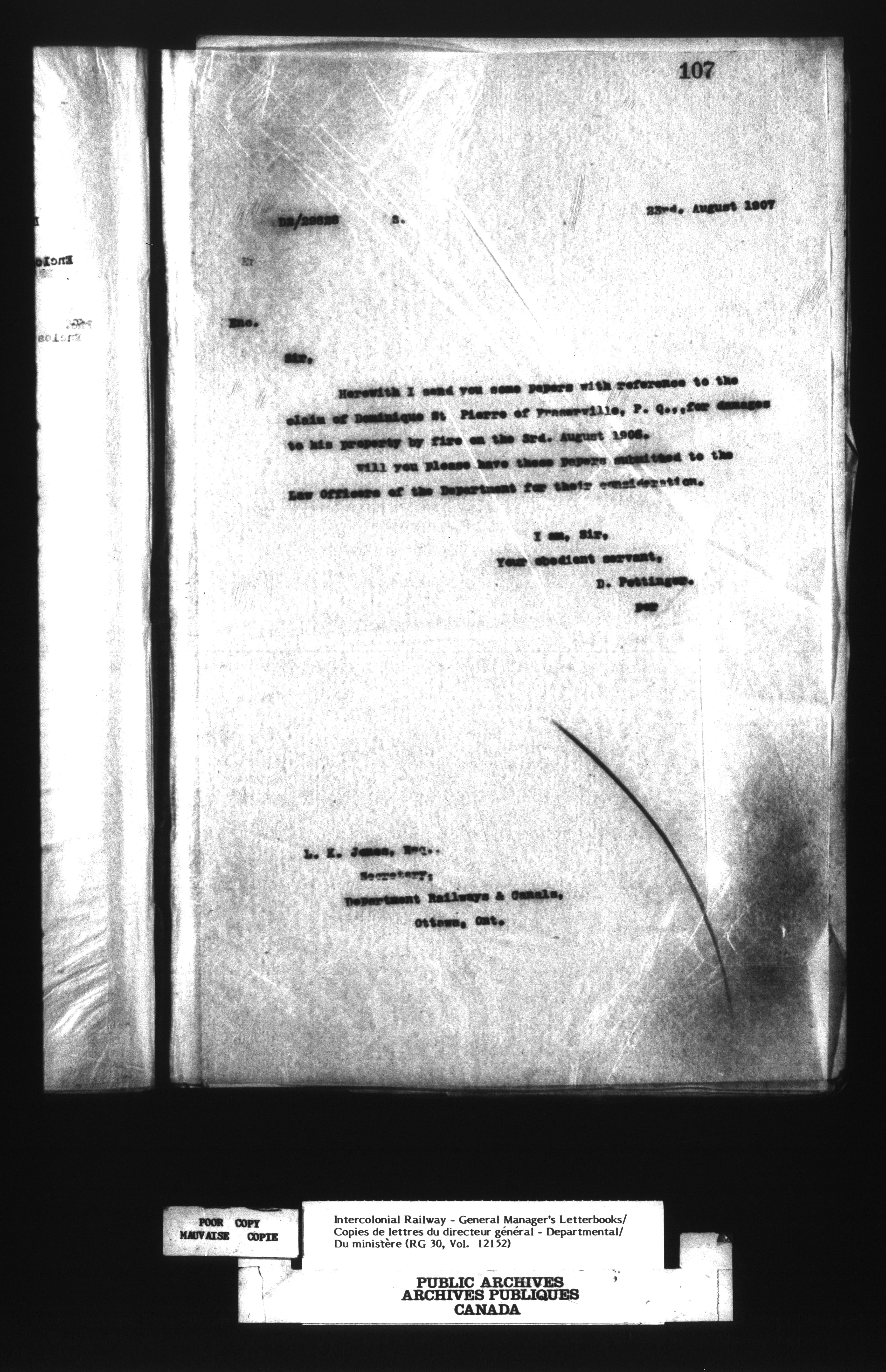 Canadian Government Railways : Office of the General Manager, Outward correspondence with Department of Railways and Canals, 1893-1913 - 12486