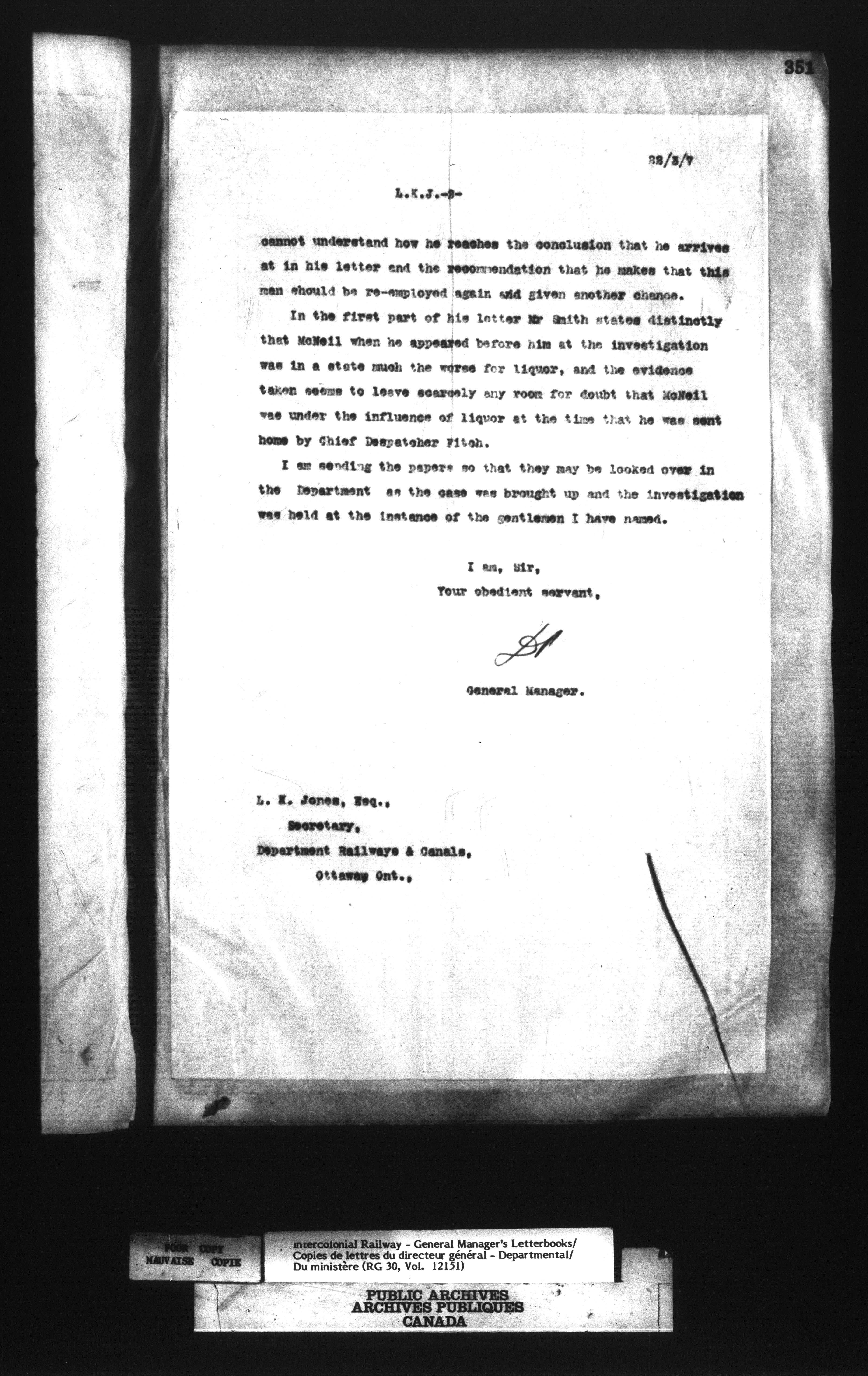 Canadian Government Railways : Office of the General Manager, Outward correspondence with Department of Railways and Canals, 1893-1913 - 12486