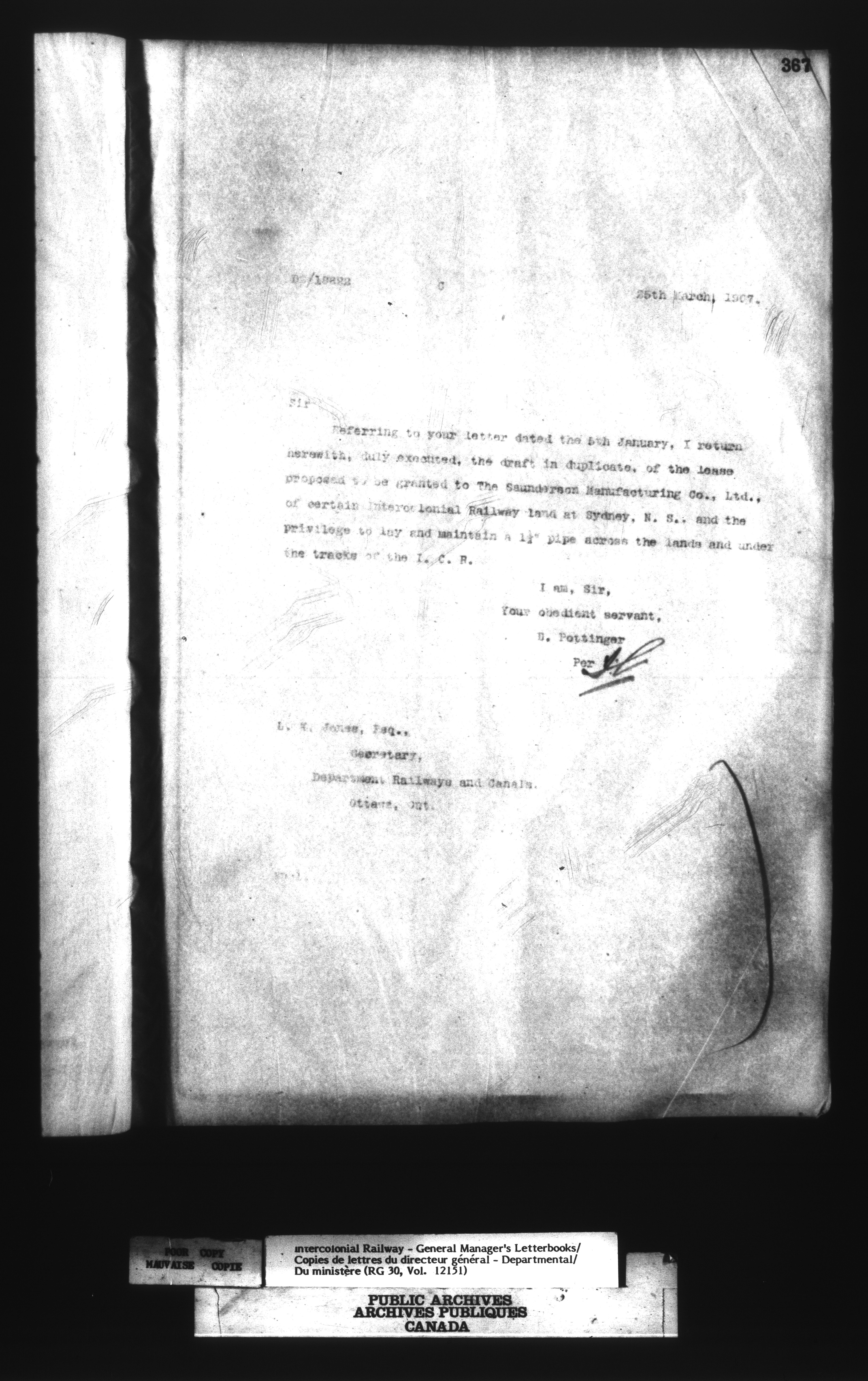 Canadian Government Railways : Office of the General Manager, Outward correspondence with Department of Railways and Canals, 1893-1913 - 12486