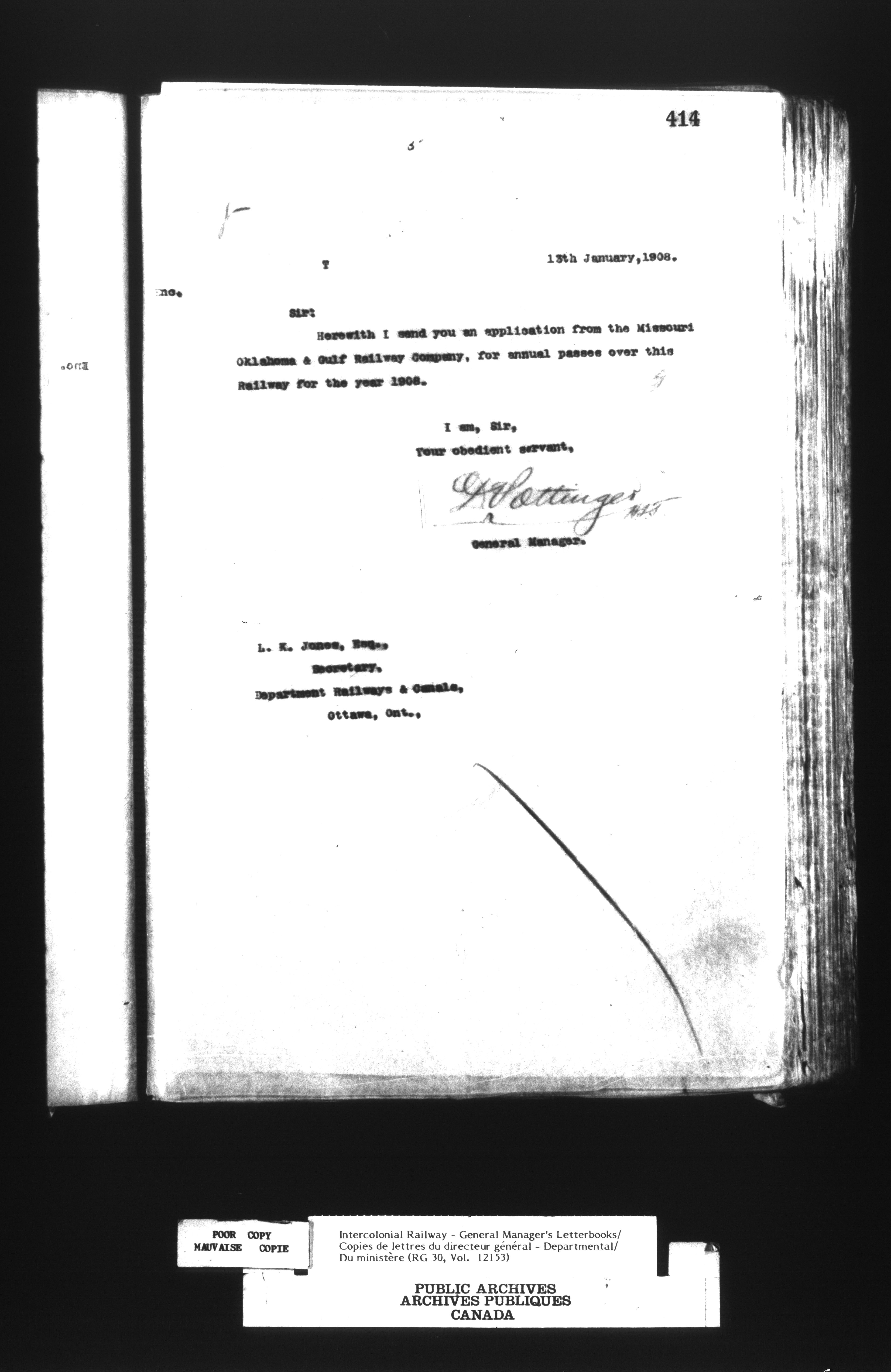 Canadian Government Railways : Office of the General Manager, Outward correspondence with Department of Railways and Canals, 1893-1913 - 12487