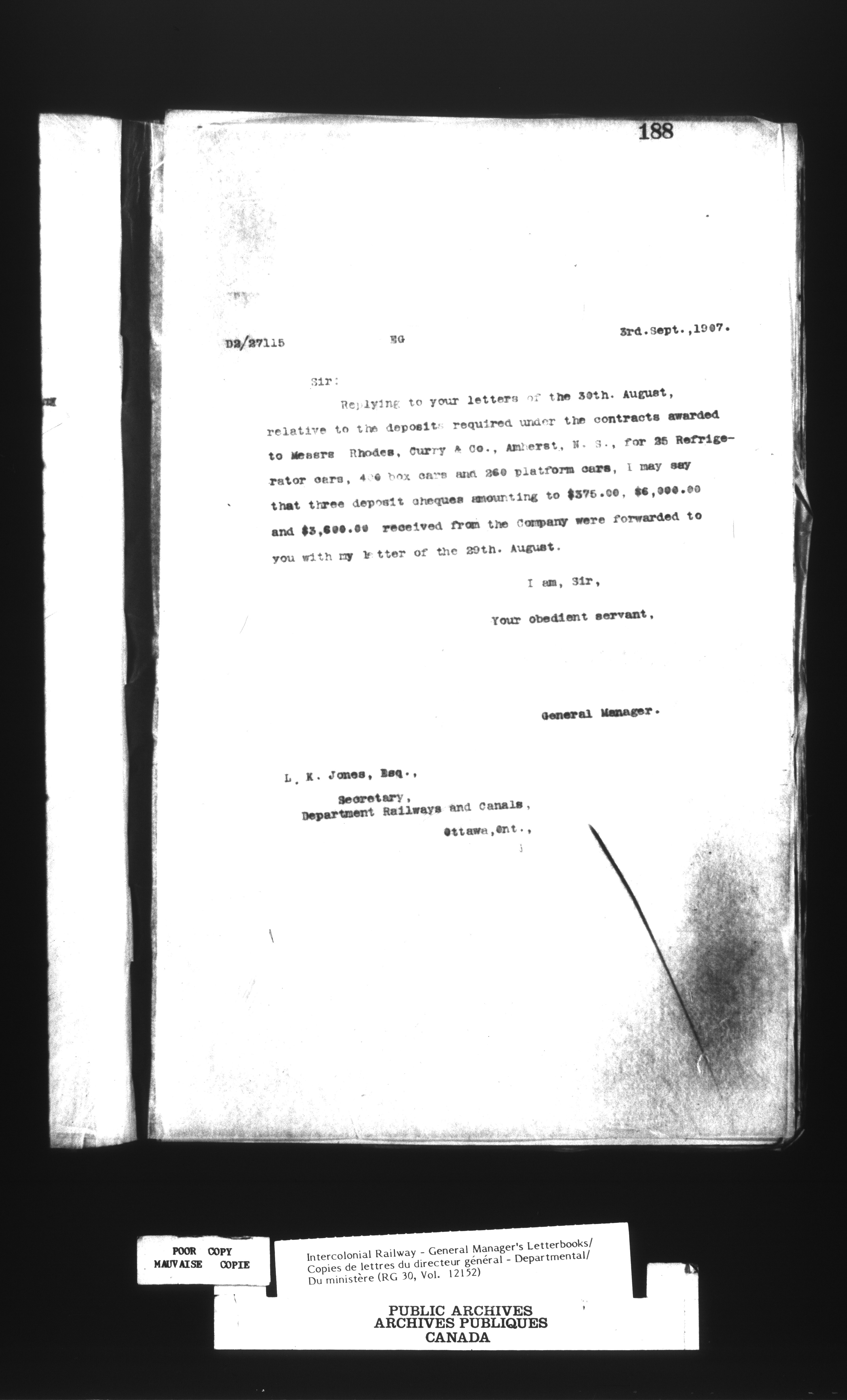 Canadian Government Railways : Office of the General Manager, Outward correspondence with Department of Railways and Canals, 1893-1913 - 12487