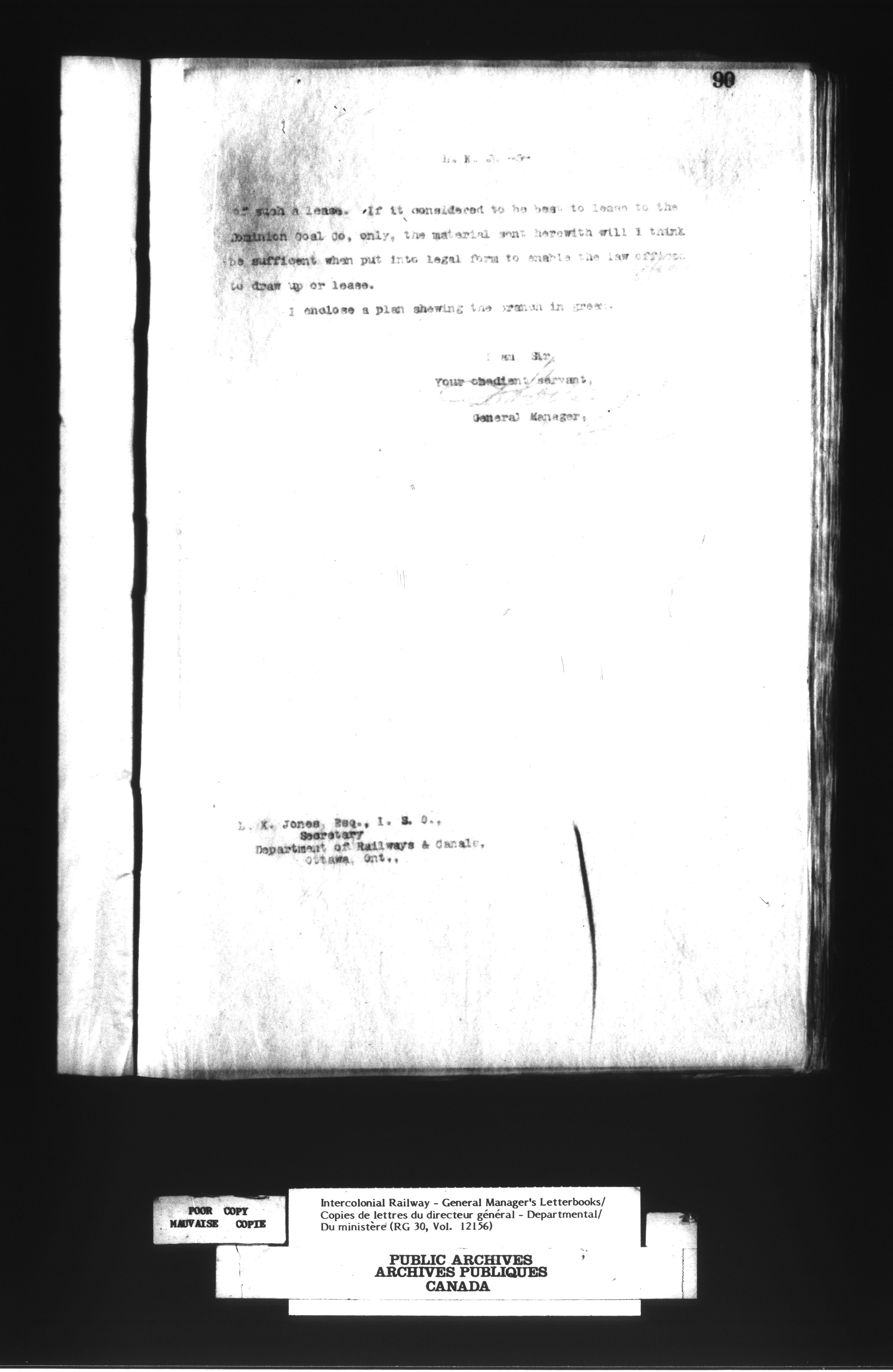 Canadian Government Railways : Office of the General Manager, Outward correspondence with Department of Railways and Canals, 1893-1913 - 12489