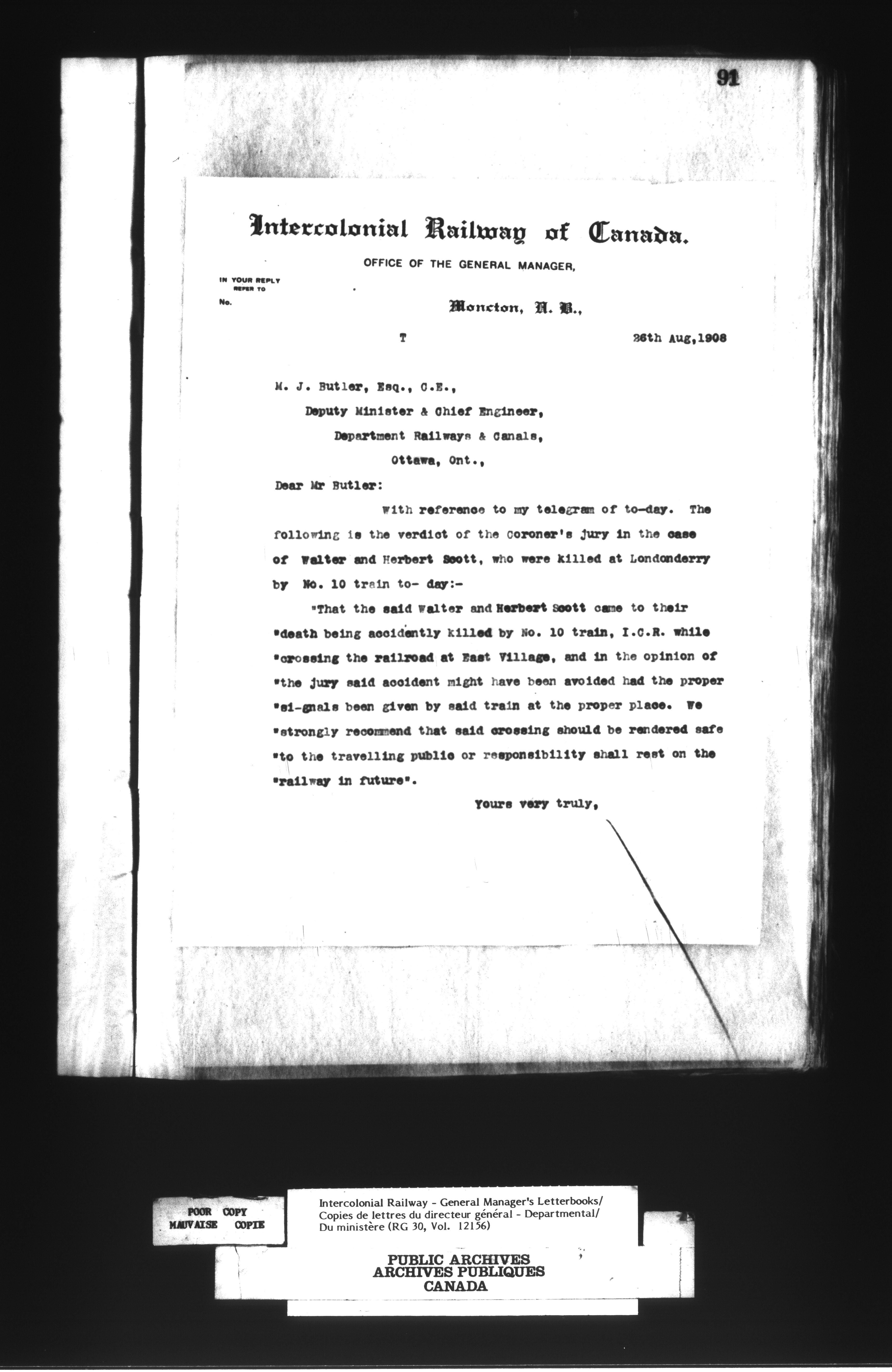 Canadian Government Railways : Office of the General Manager, Outward correspondence with Department of Railways and Canals, 1893-1913 - 12489