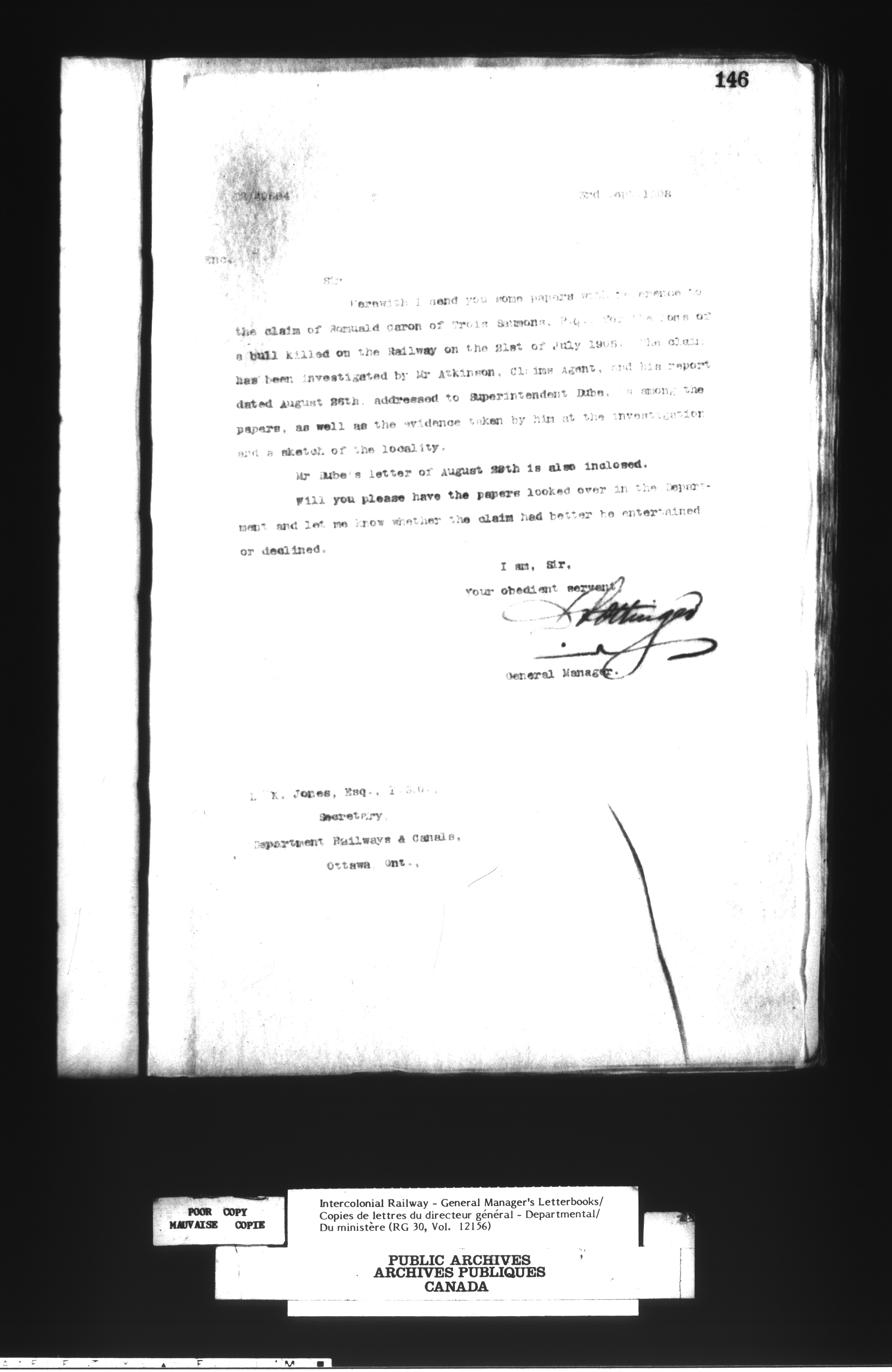 Canadian Government Railways : Office of the General Manager, Outward correspondence with Department of Railways and Canals, 1893-1913 - 12489