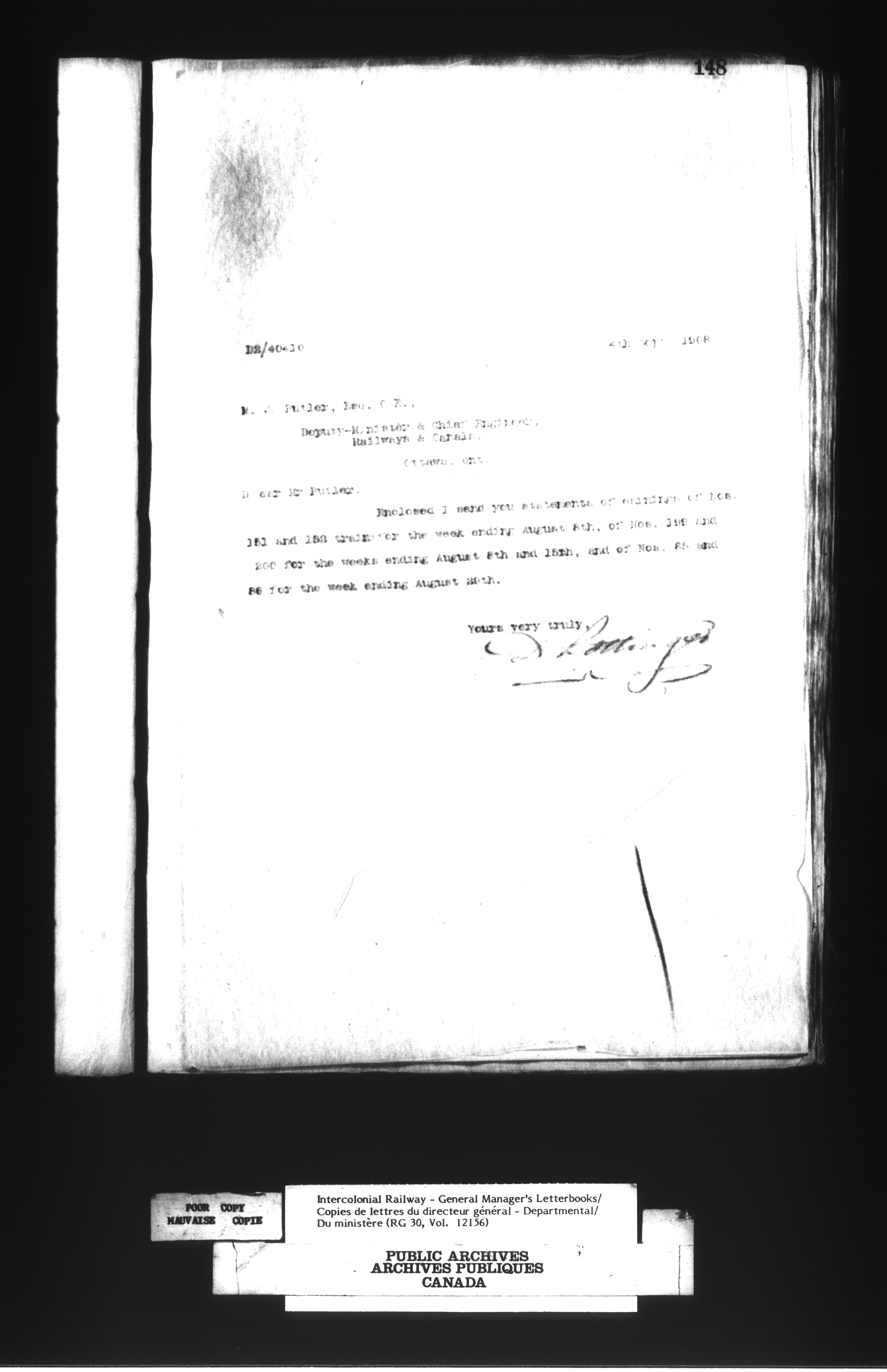 Canadian Government Railways : Office of the General Manager, Outward correspondence with Department of Railways and Canals, 1893-1913 - 12489