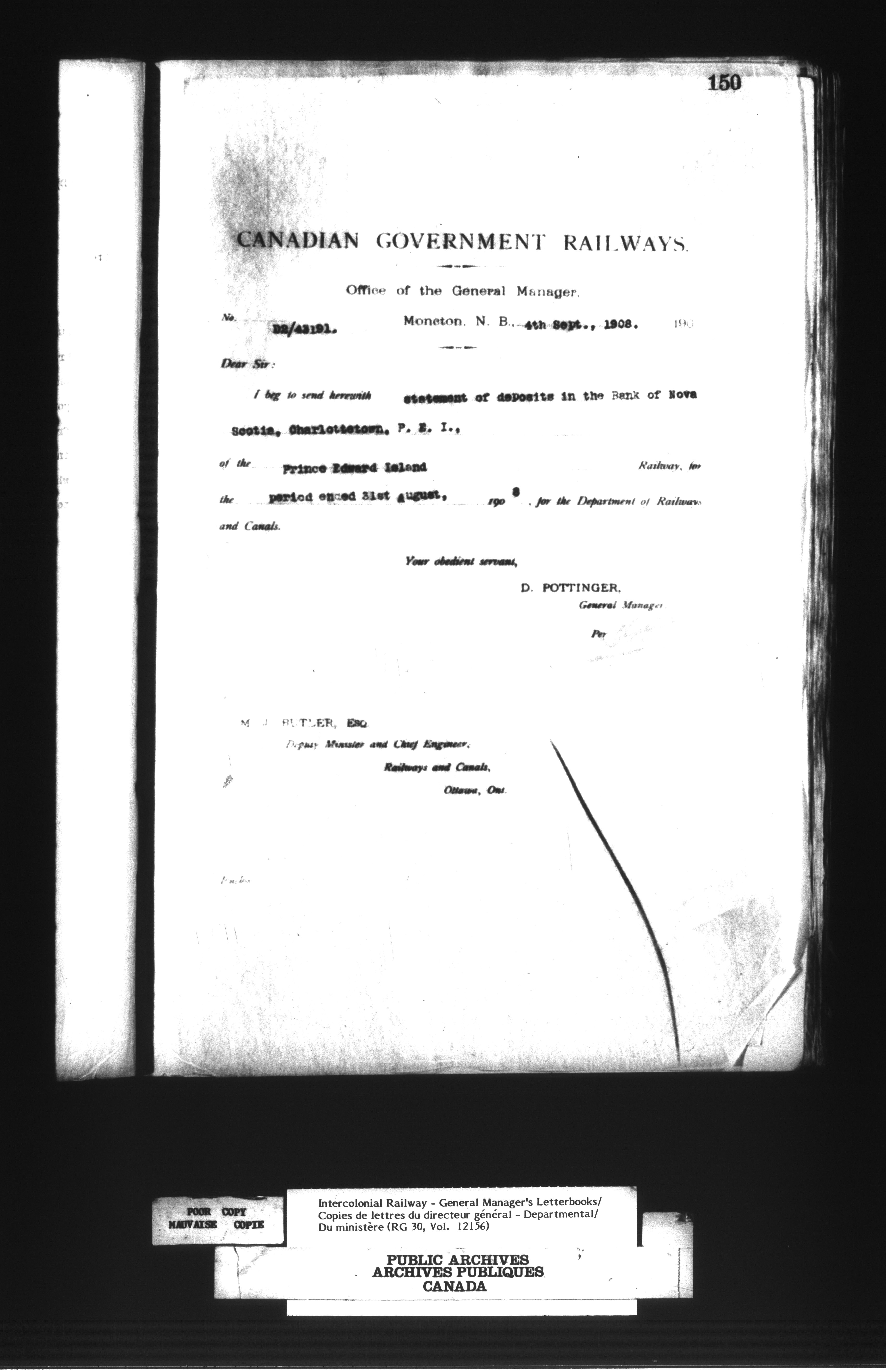 Canadian Government Railways : Office of the General Manager, Outward correspondence with Department of Railways and Canals, 1893-1913 - 12489