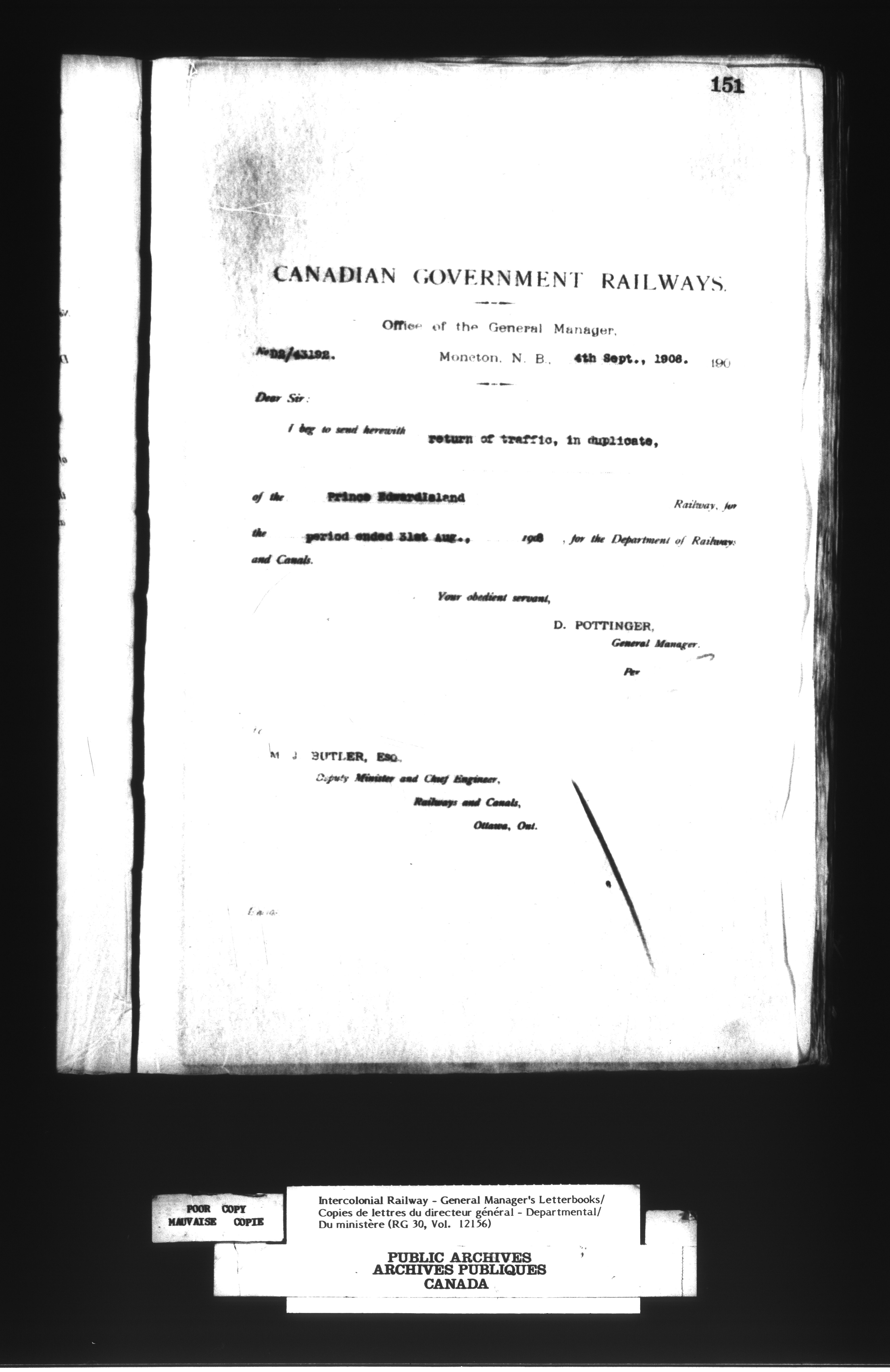 Canadian Government Railways : Office of the General Manager, Outward correspondence with Department of Railways and Canals, 1893-1913 - 12489