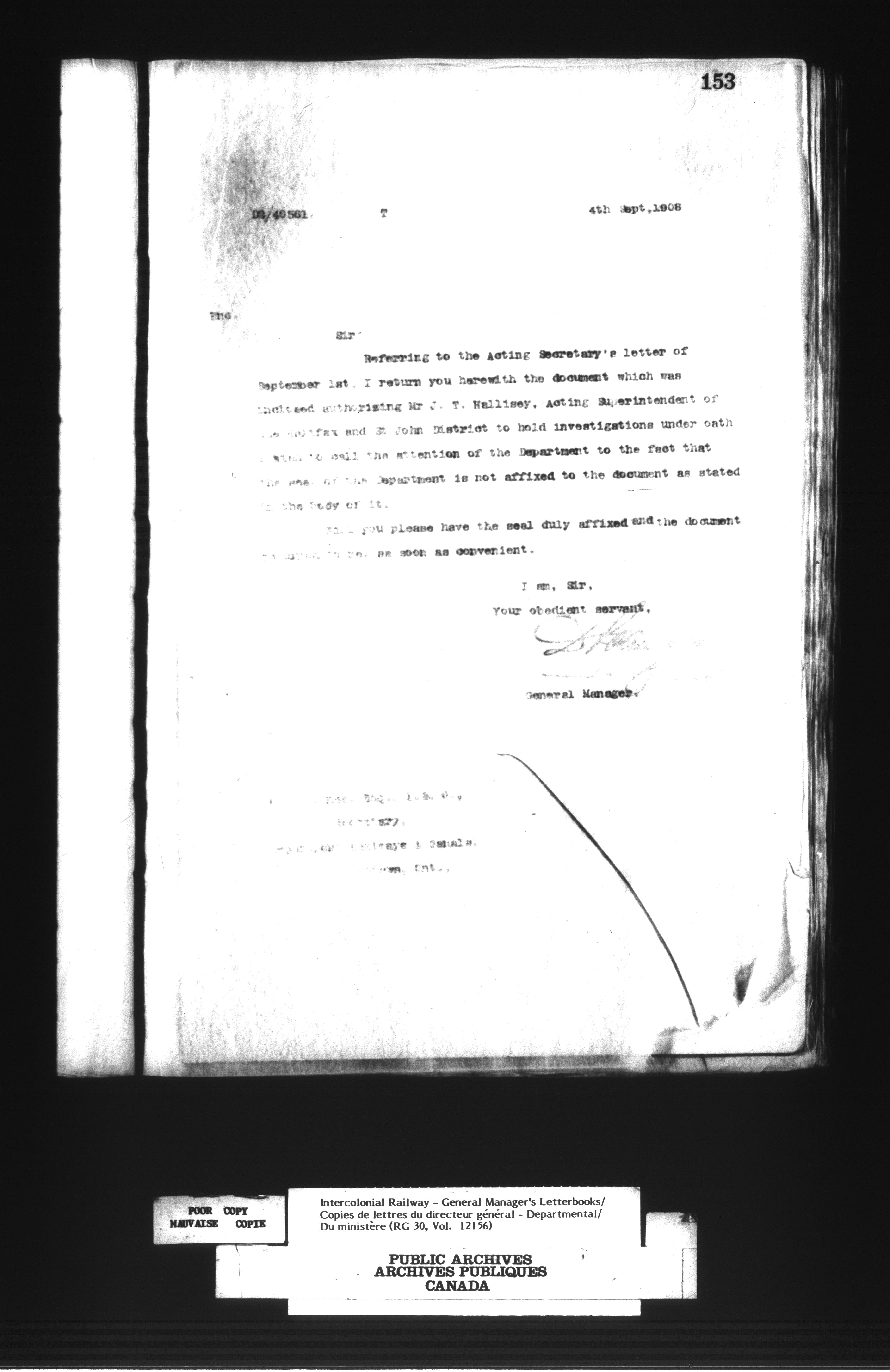 Canadian Government Railways : Office of the General Manager, Outward correspondence with Department of Railways and Canals, 1893-1913 - 12489