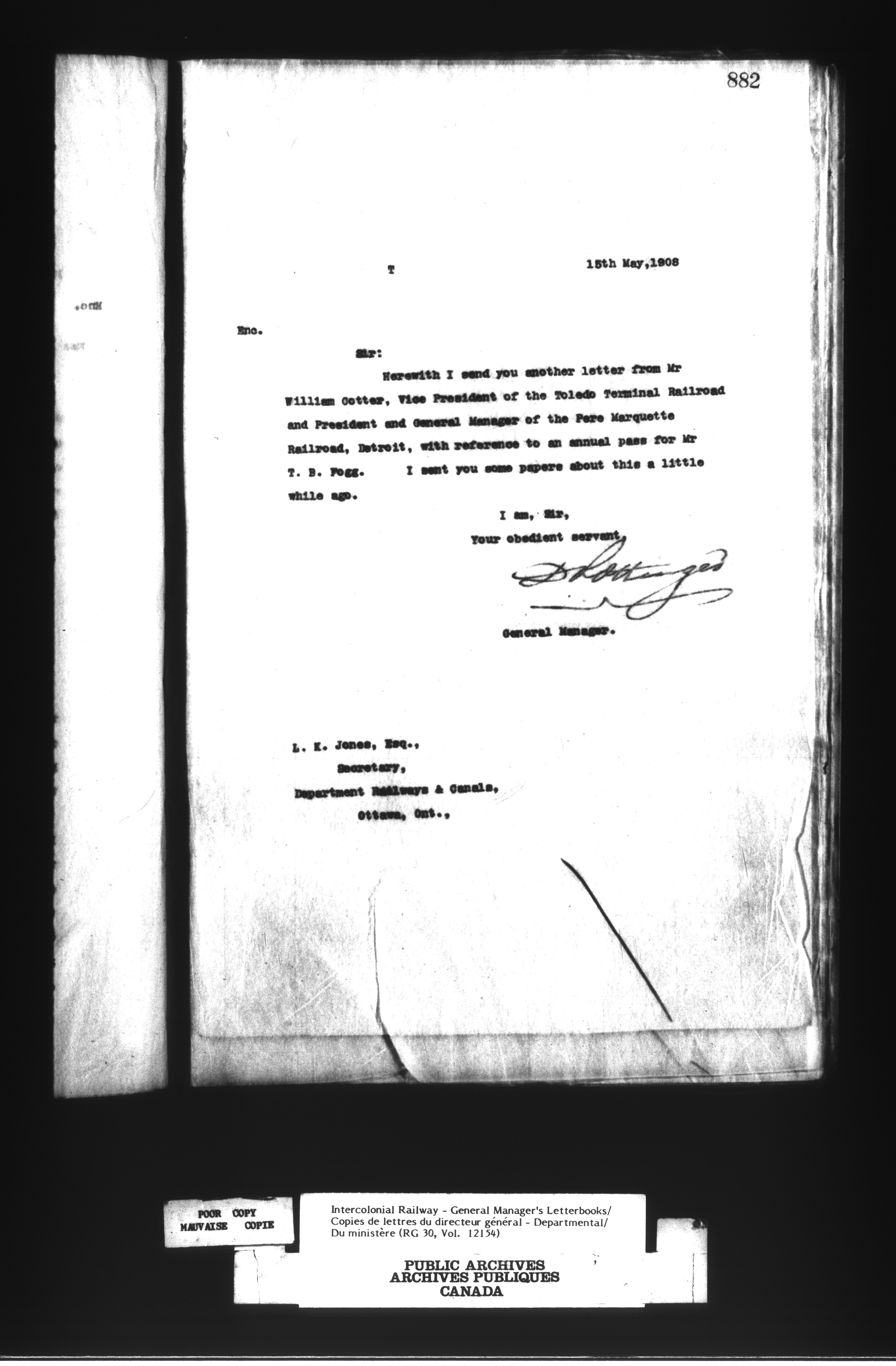 Canadian Government Railways : Office of the General Manager, Outward correspondence with Department of Railways and Canals, 1893-1913 - 12489