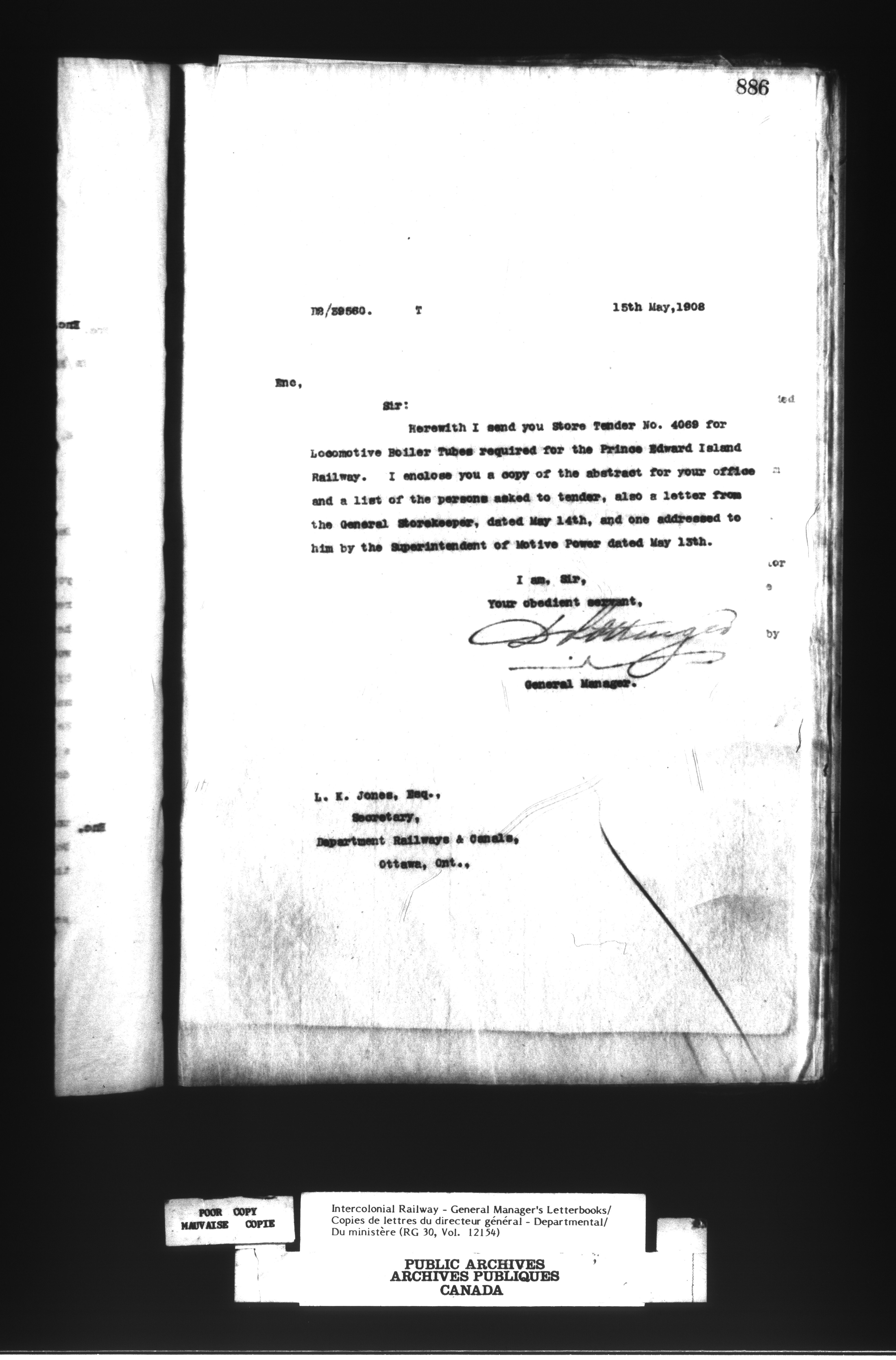 Canadian Government Railways : Office of the General Manager, Outward correspondence with Department of Railways and Canals, 1893-1913 - 12489