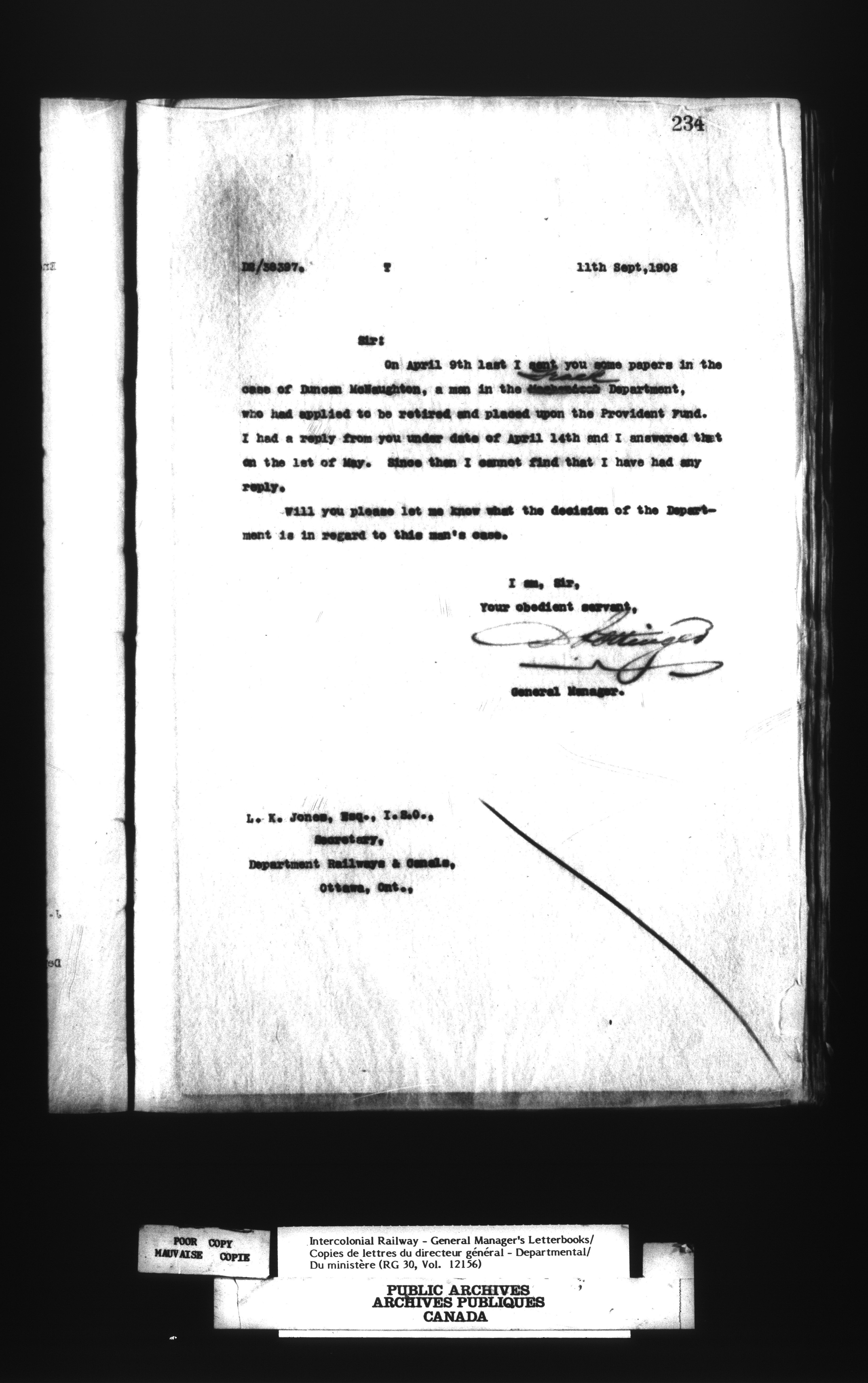 Canadian Government Railways : Office of the General Manager, Outward correspondence with Department of Railways and Canals, 1893-1913 - 12490