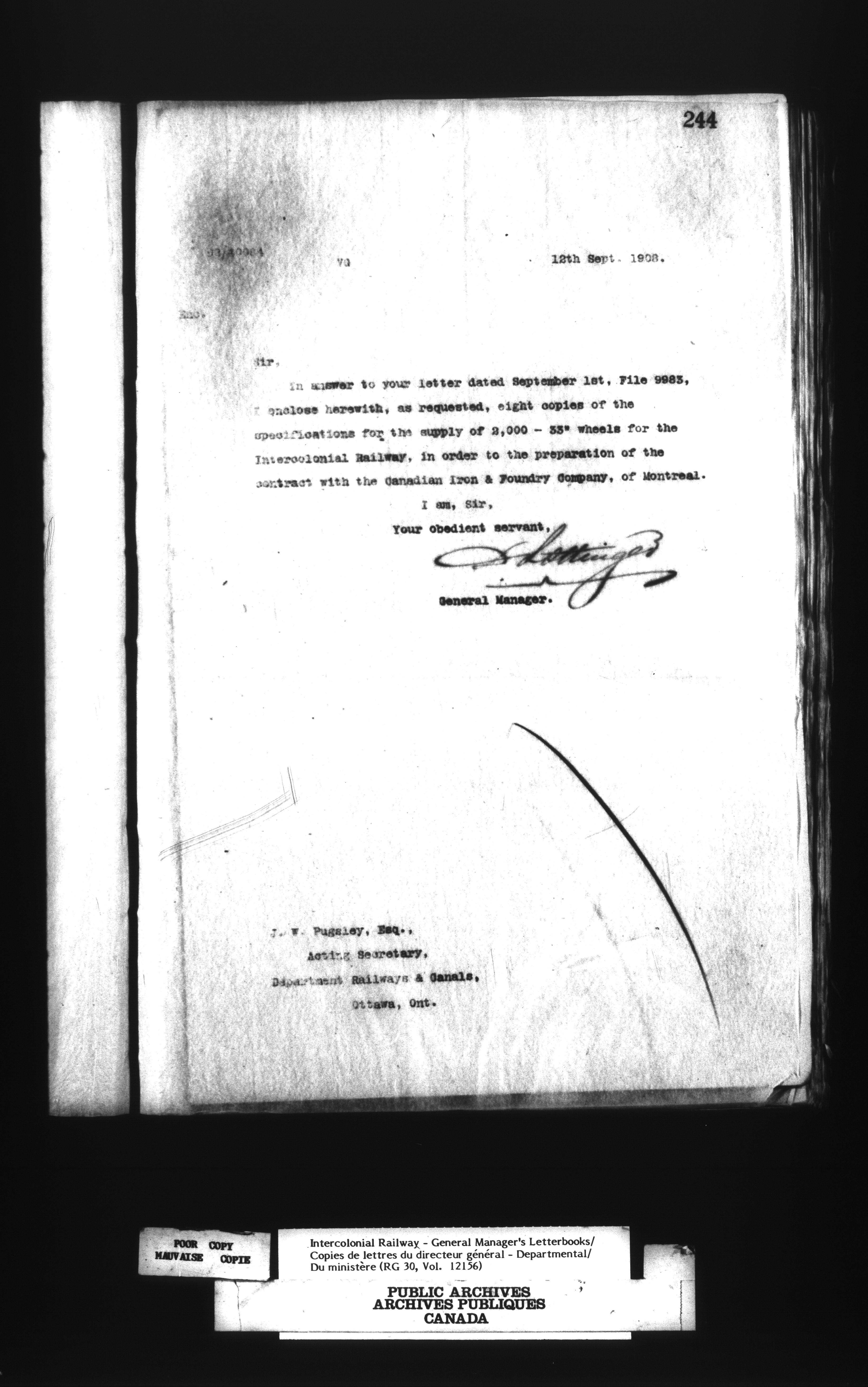 Canadian Government Railways : Office of the General Manager, Outward correspondence with Department of Railways and Canals, 1893-1913 - 12490