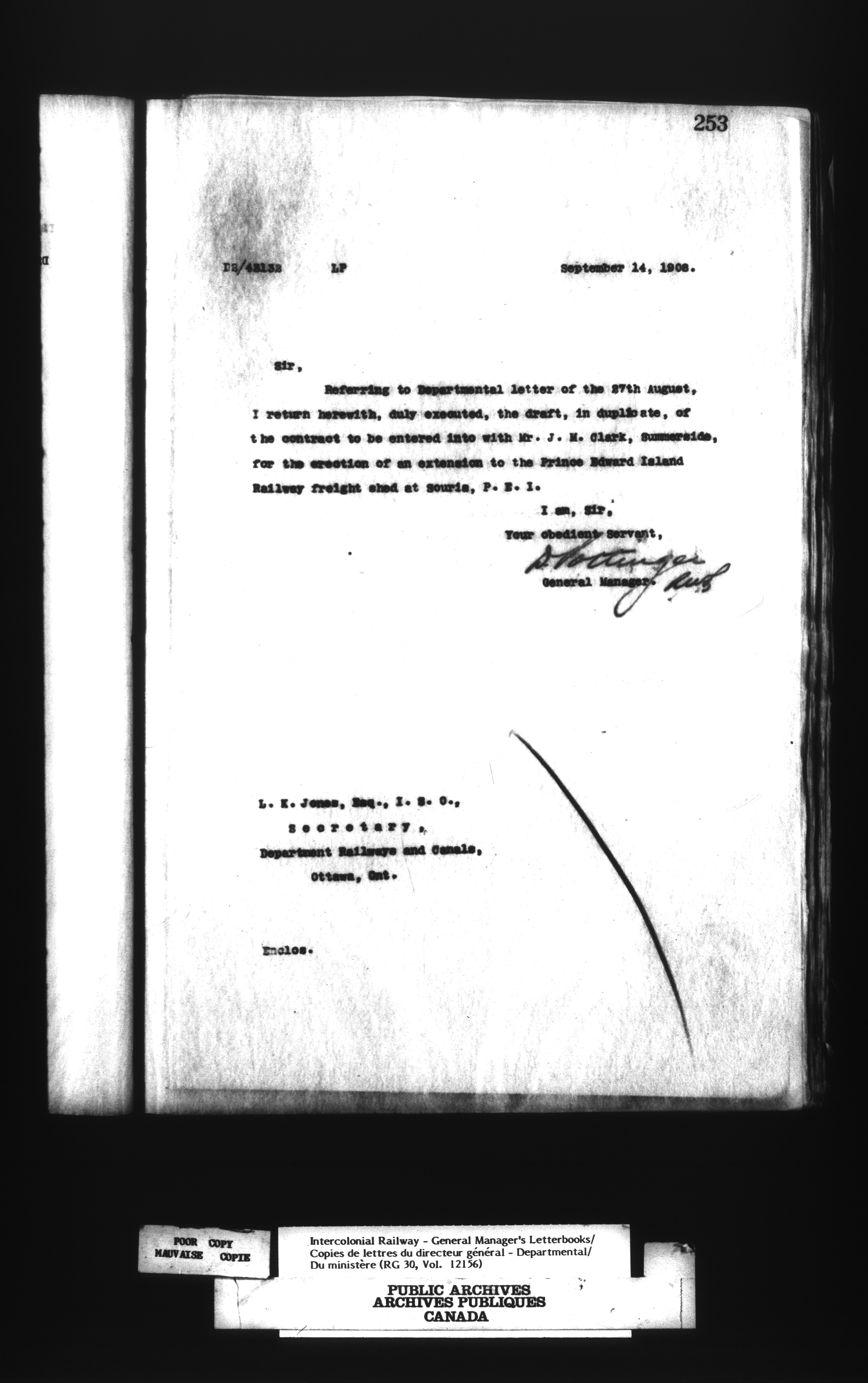 Canadian Government Railways : Office of the General Manager, Outward correspondence with Department of Railways and Canals, 1893-1913 - 12490