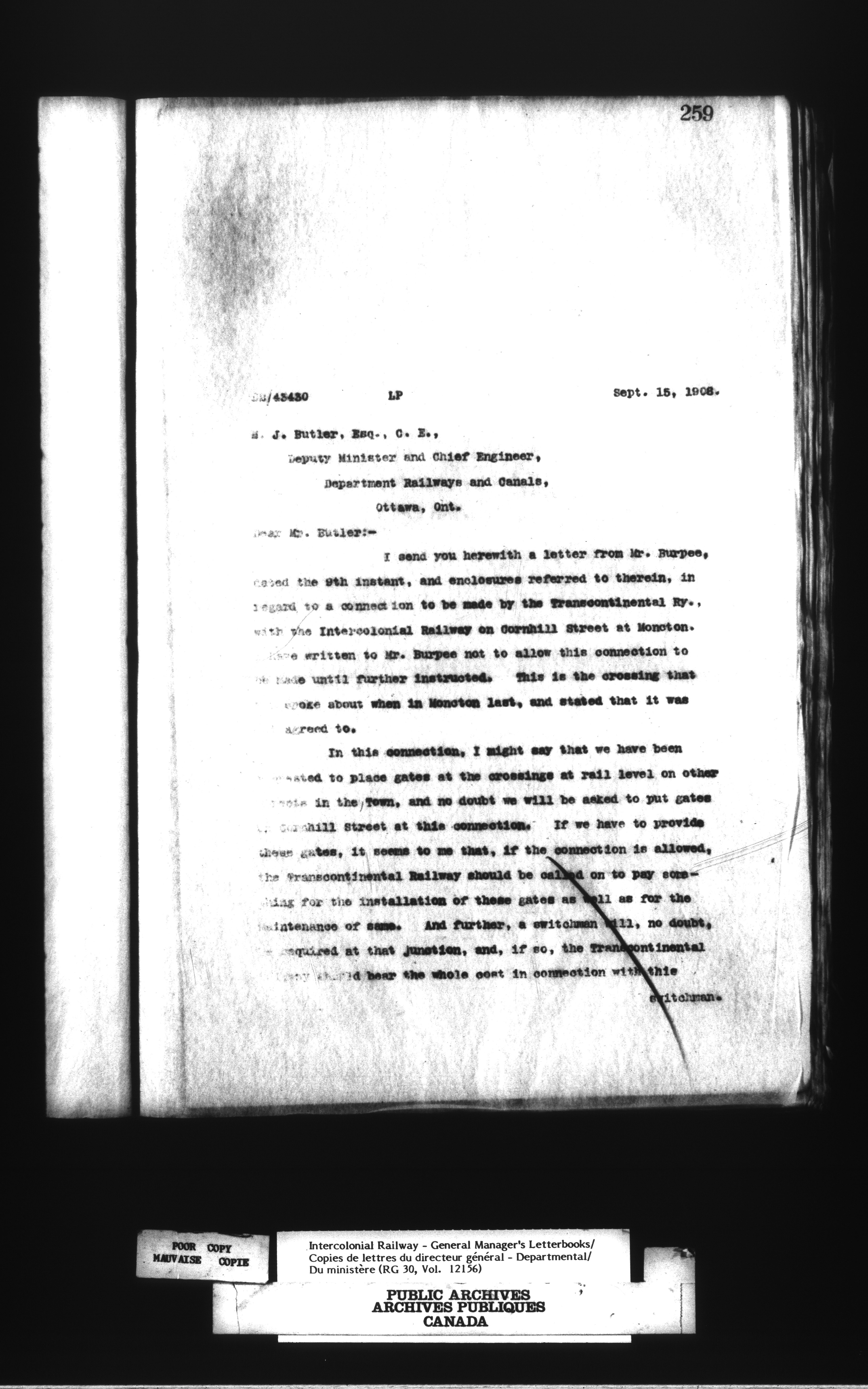 Canadian Government Railways : Office of the Chief Superintendent, Outward correspondence : C-12490