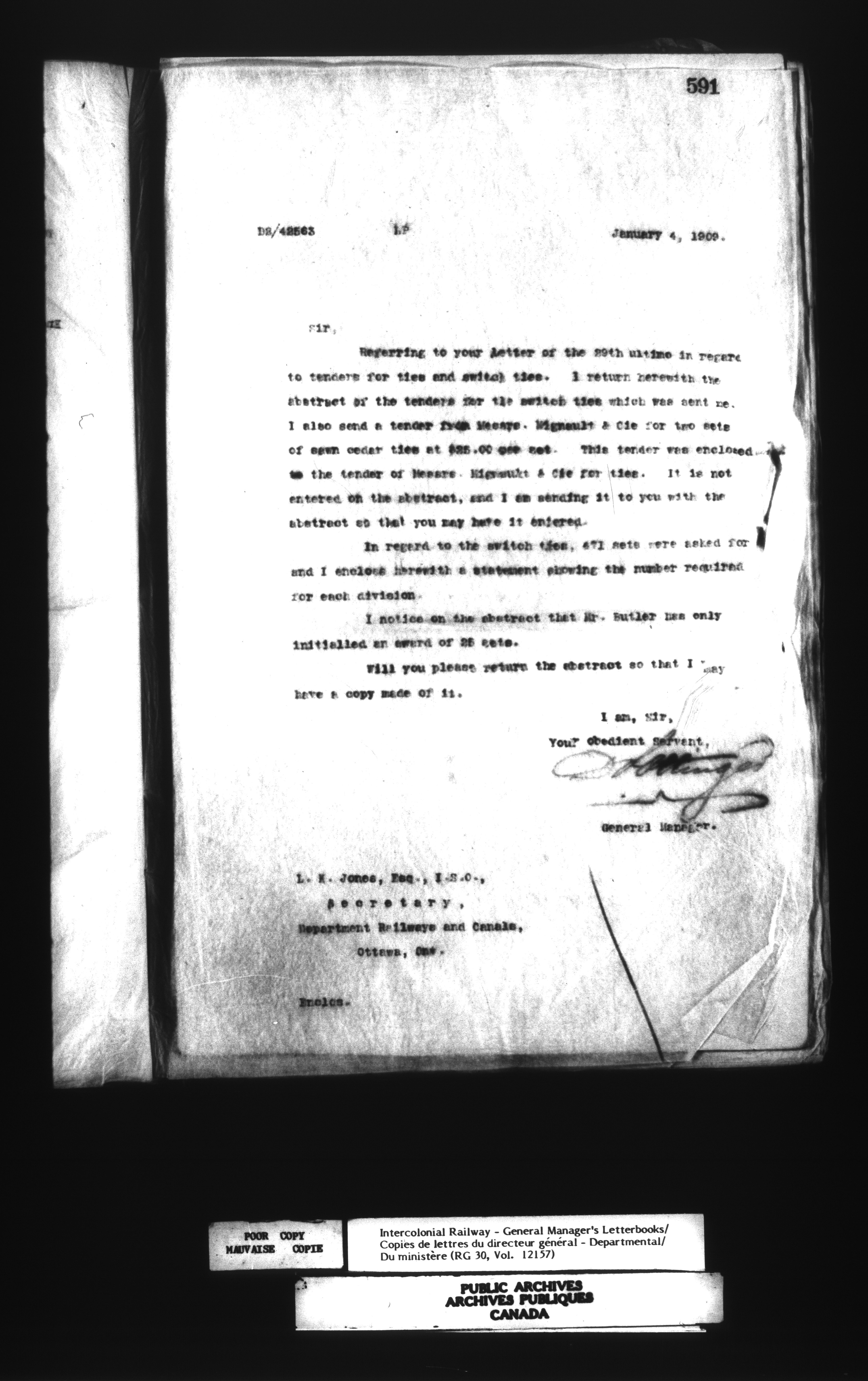 Canadian Government Railways : Office of the General Manager, Outward correspondence with Department of Railways and Canals, 1893-1913 - 12491