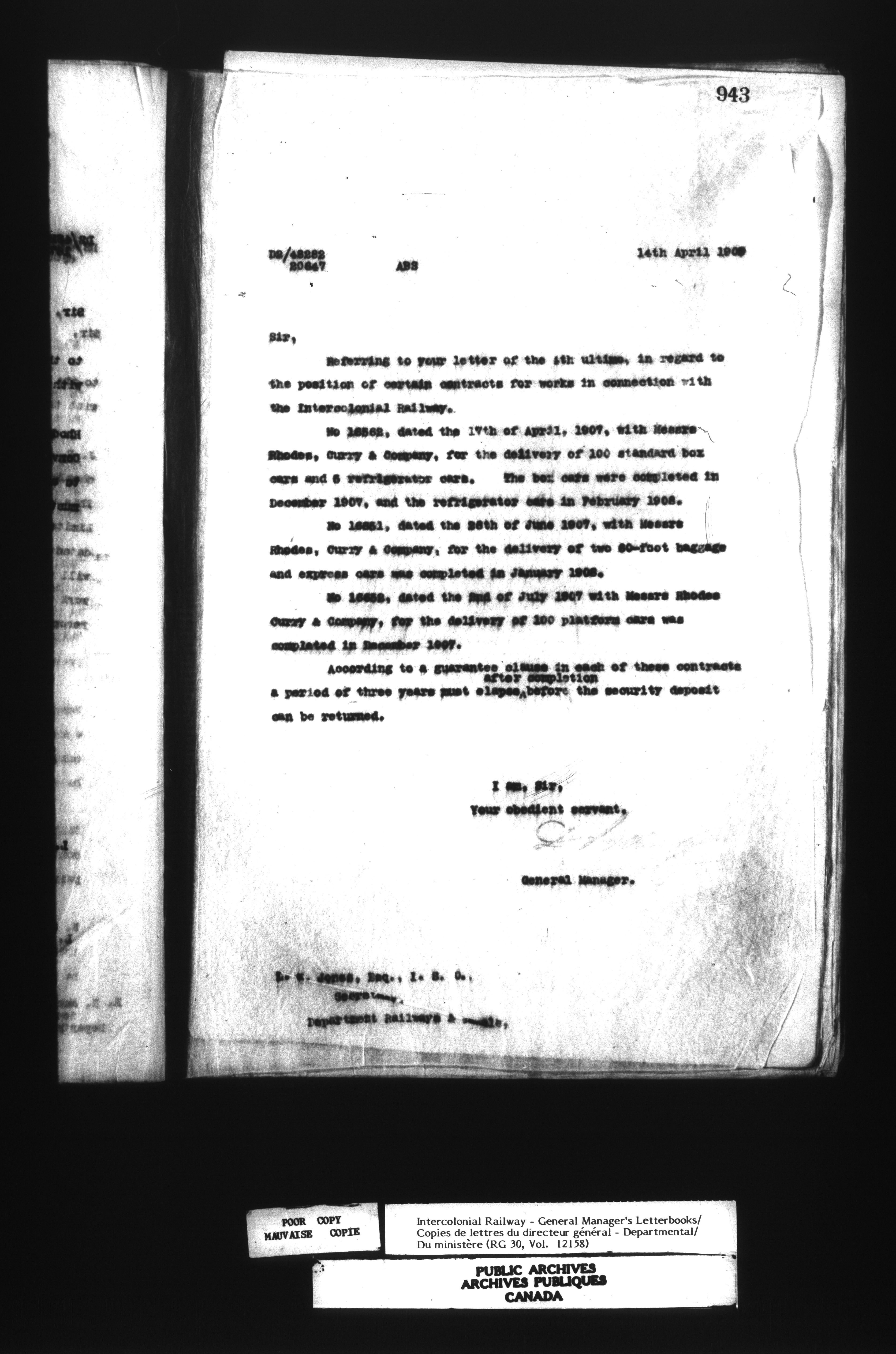 Canadian Government Railways : Office of the General Manager, Outward correspondence with Department of Railways and Canals, 1893-1913 - 12492