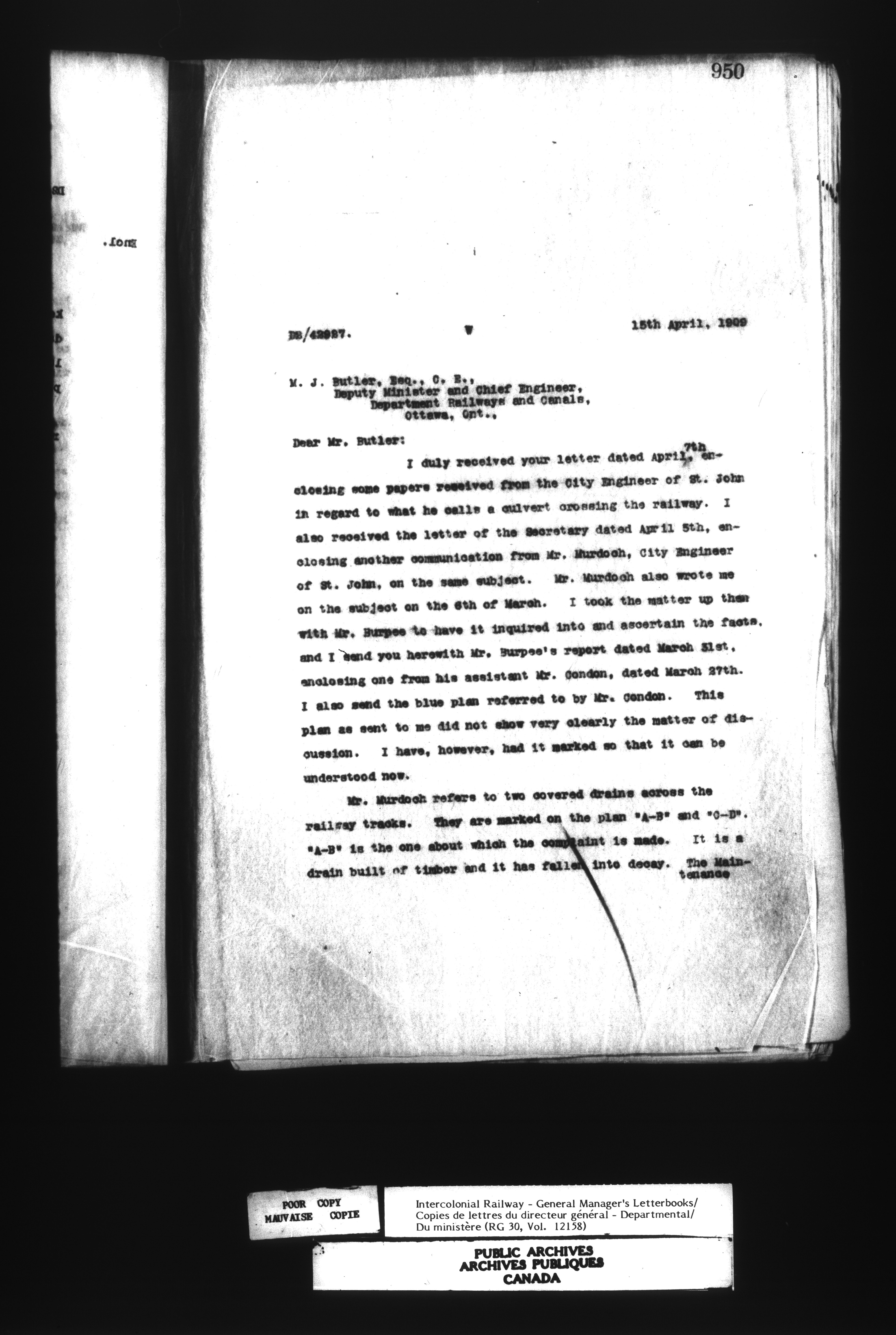 Canadian Government Railways : Office of the General Manager, Outward correspondence with Department of Railways and Canals, 1893-1913 - 12492