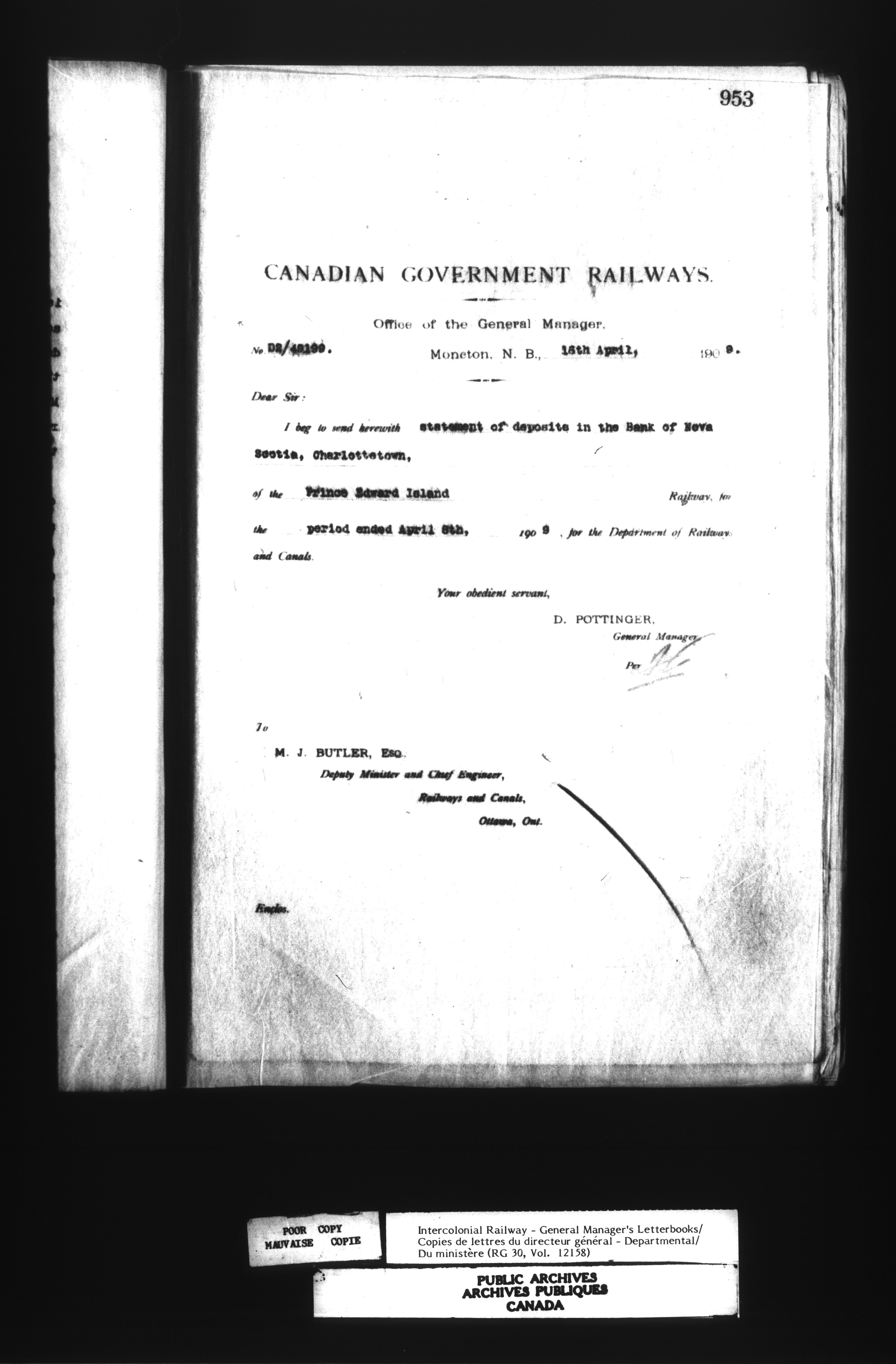 Canadian Government Railways : Office of the General Manager, Outward correspondence with Department of Railways and Canals, 1893-1913 - 12492
