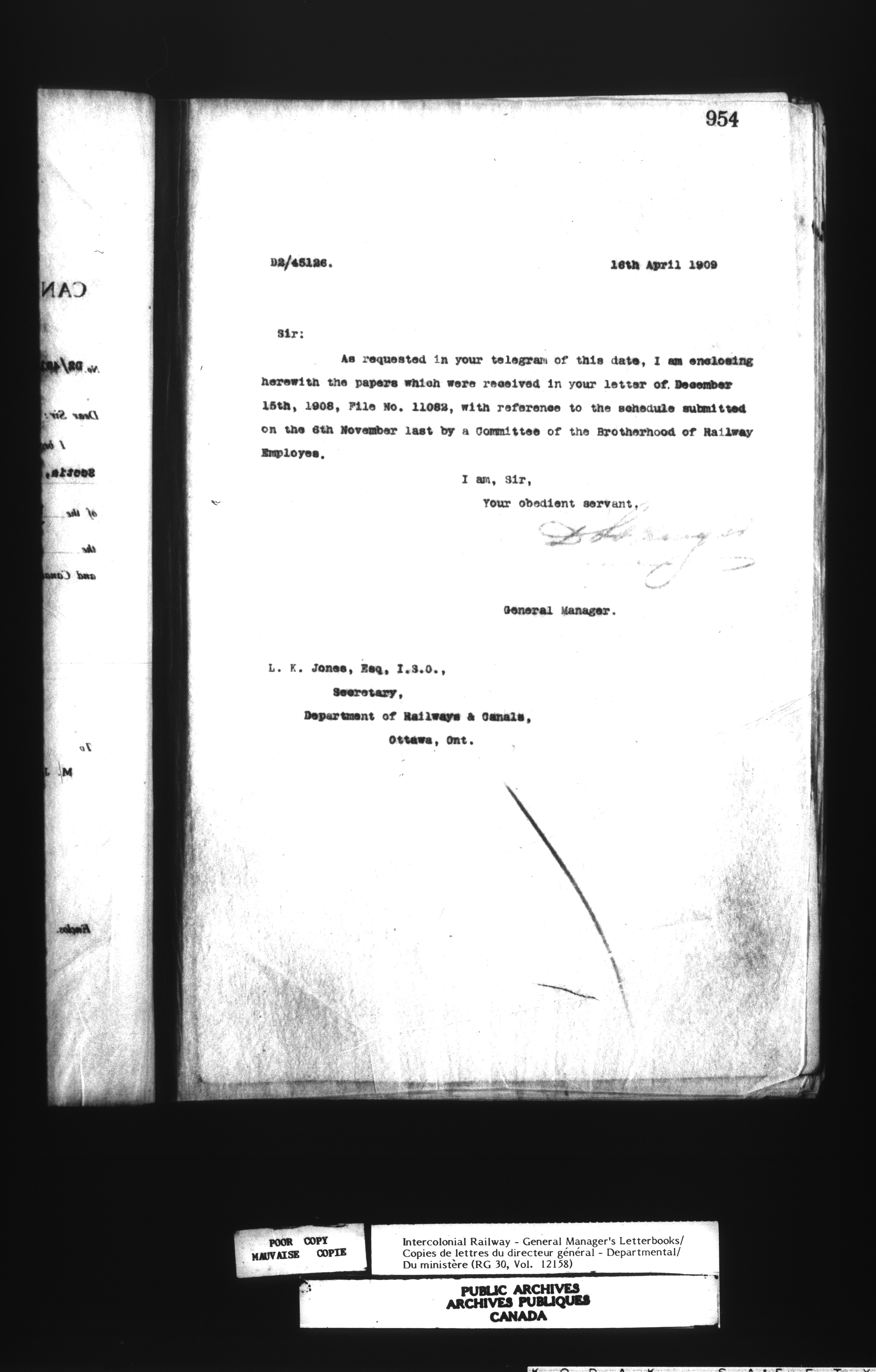 Canadian Government Railways : Office of the General Manager, Outward correspondence with Department of Railways and Canals, 1893-1913 - 12492