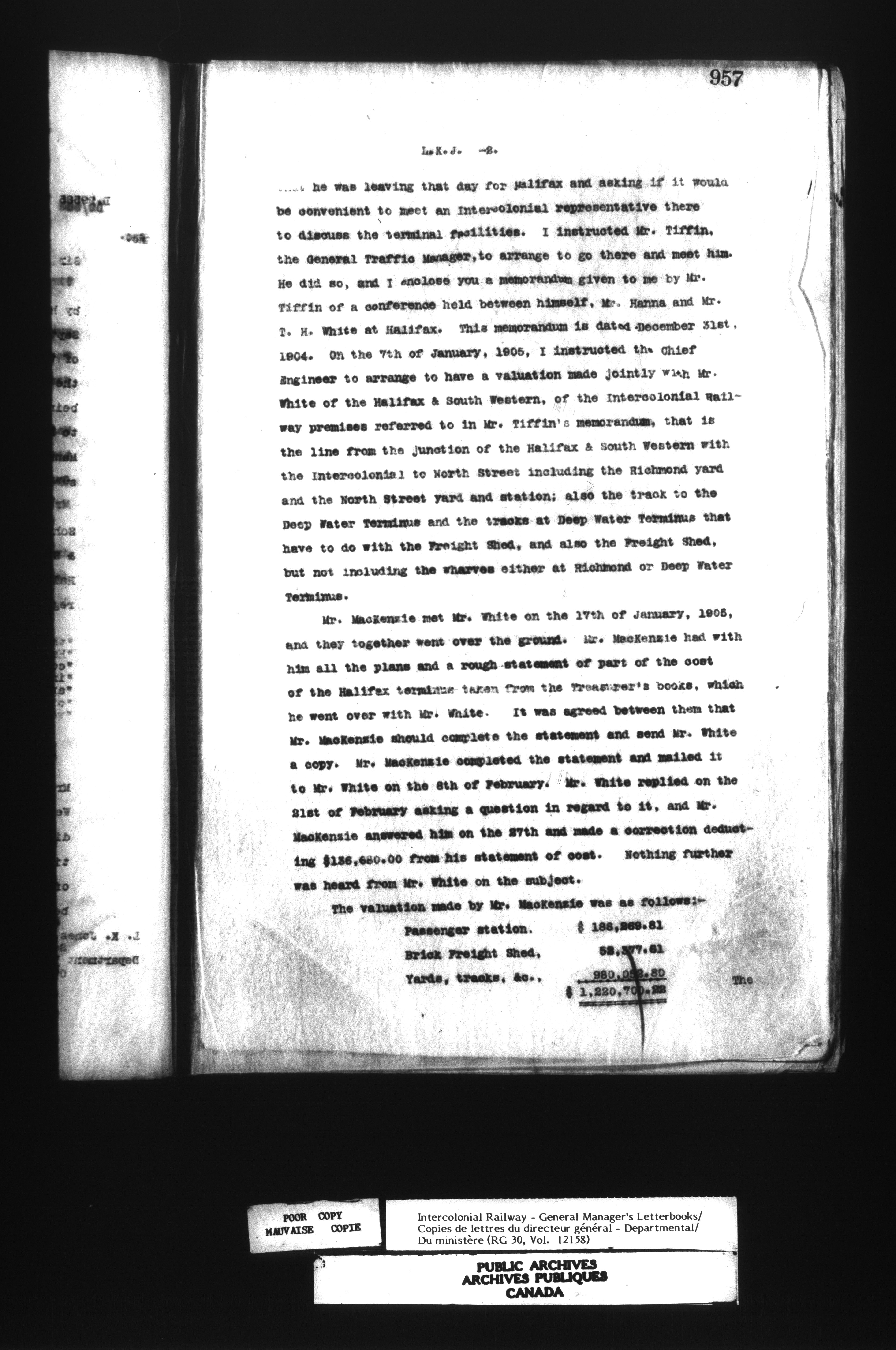 Canadian Government Railways : Office of the General Manager, Outward correspondence with Department of Railways and Canals, 1893-1913 - 12492