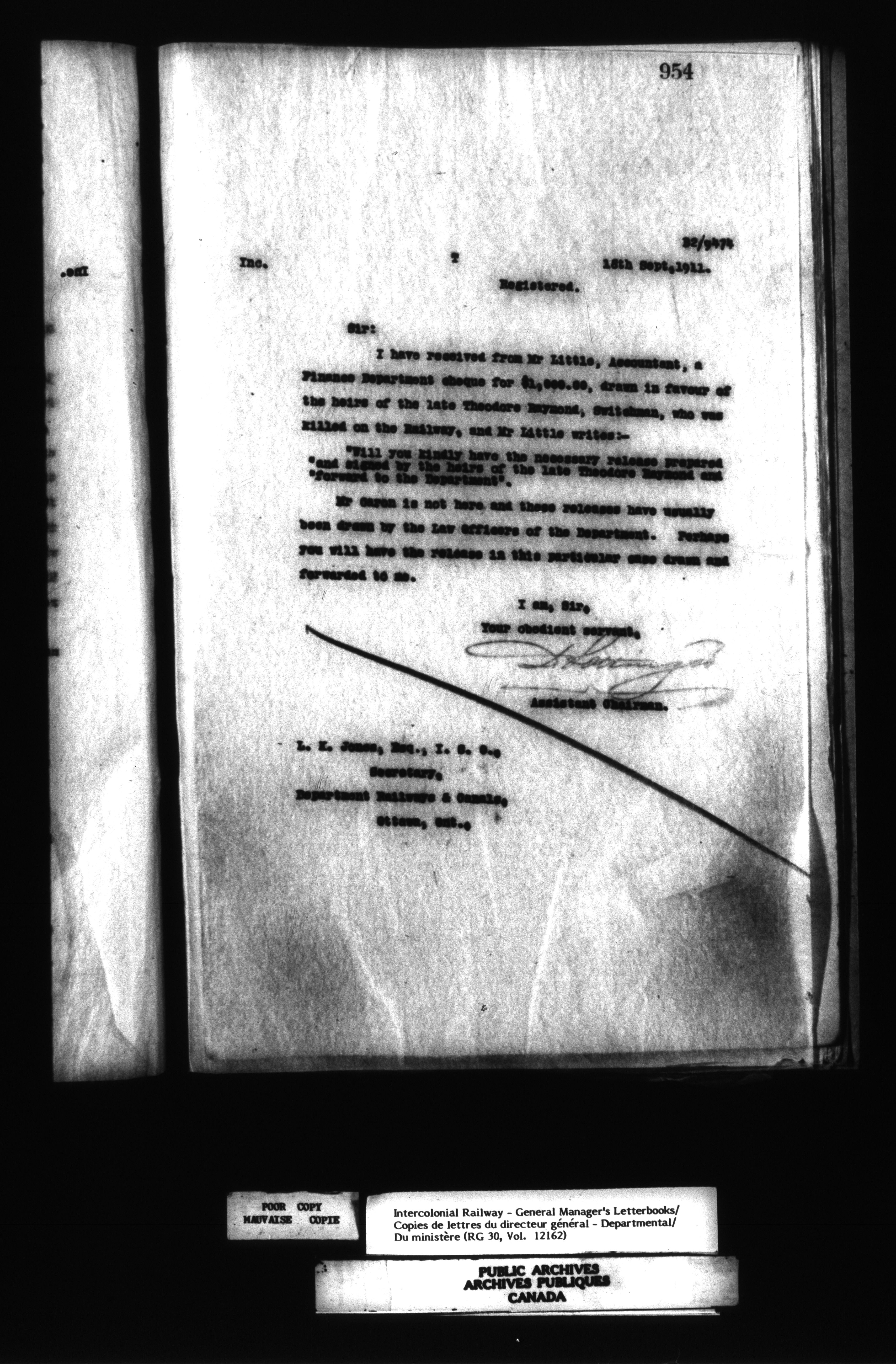 Canadian Government Railways : Office of the General Manager, Outward correspondence with Department of Railways and Canals, 1893-1913 - 12494