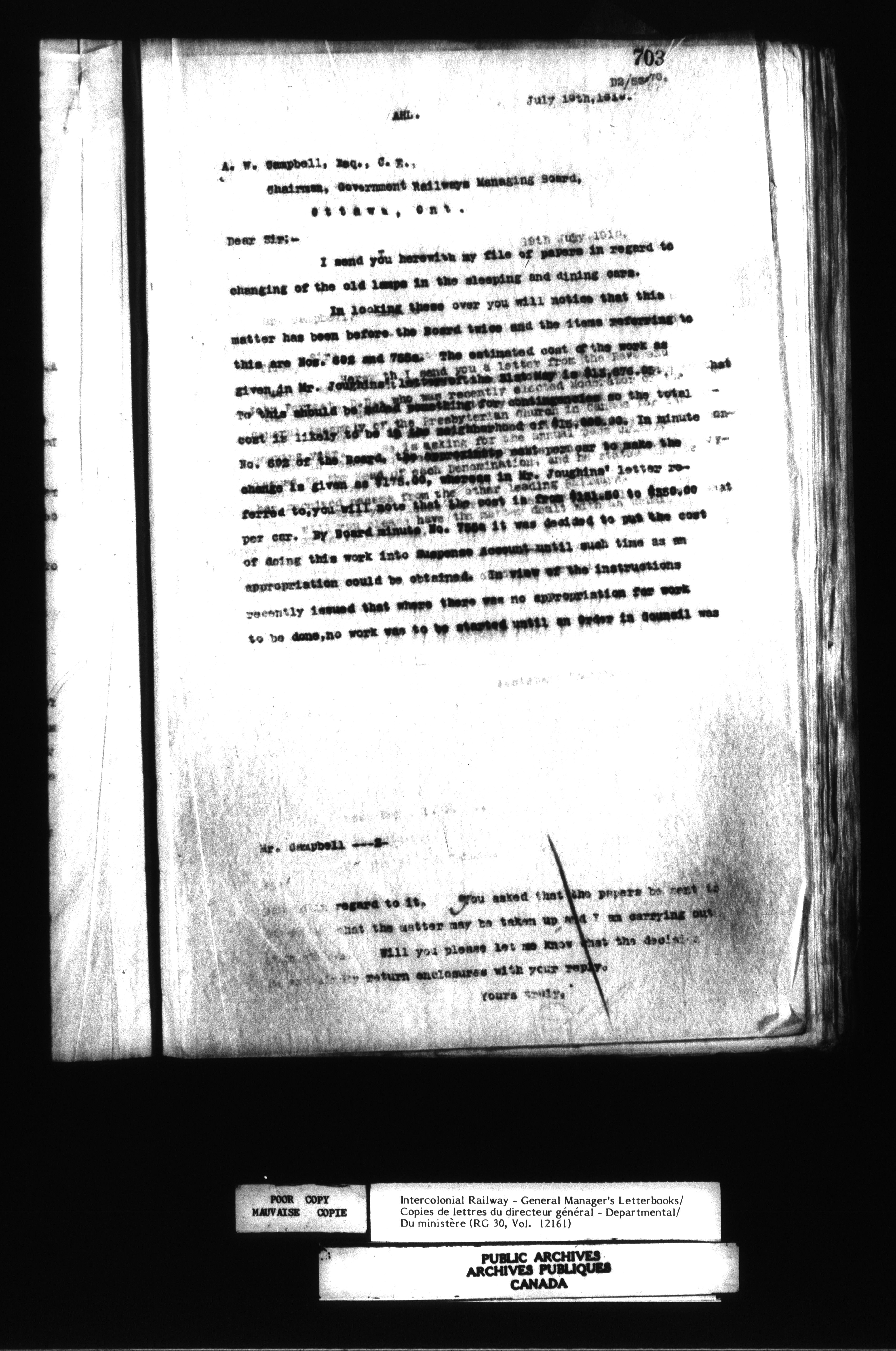 Canadian Government Railways : Office of the General Manager, Outward correspondence with Department of Railways and Canals, 1893-1913 - 12494