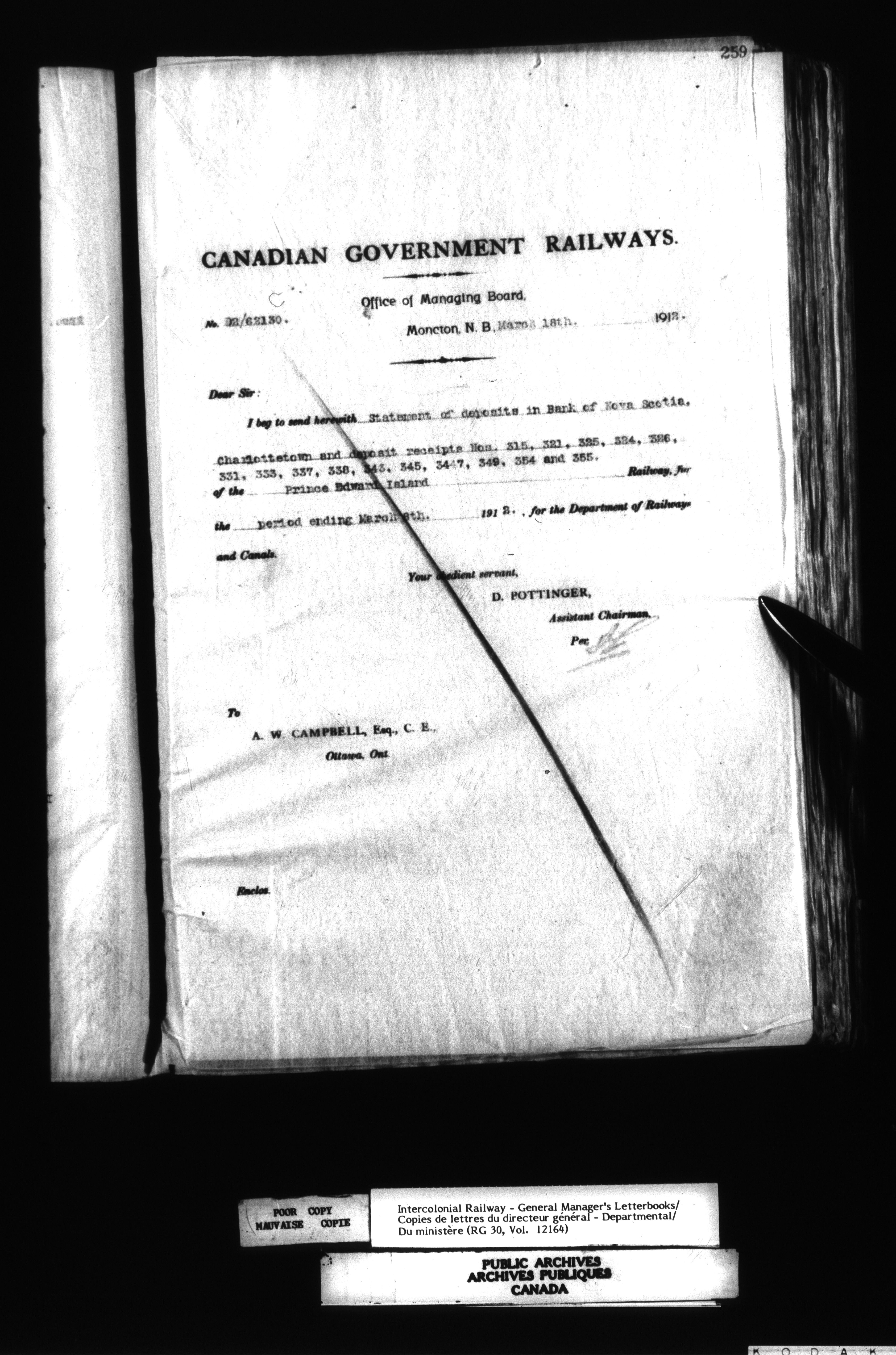 Canadian Government Railways : Office of the General Manager, Outward correspondence with Department of Railways and Canals, 1893-1913 - 12495