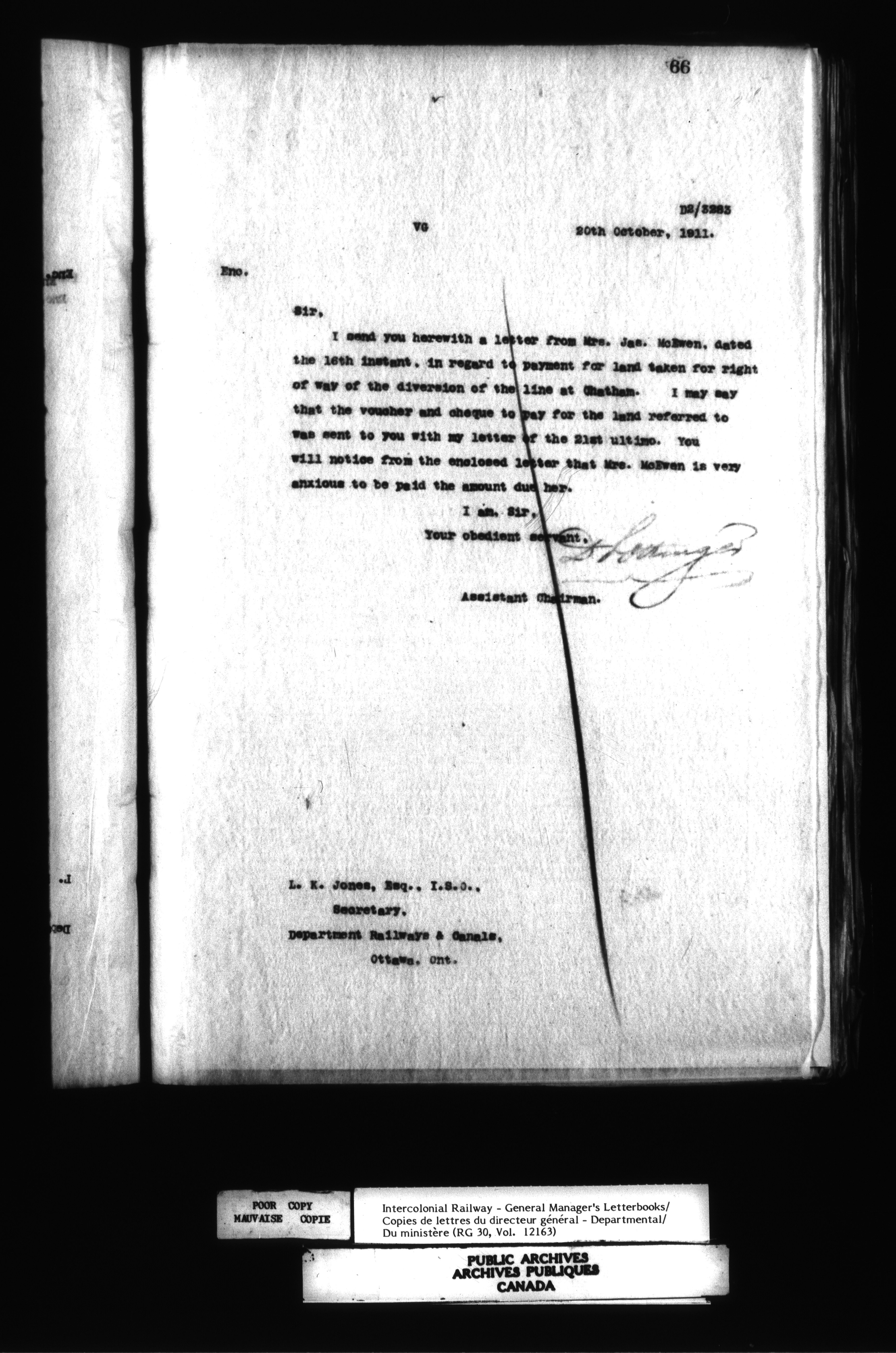 Canadian Government Railways : Office of the General Manager, Outward correspondence with Department of Railways and Canals, 1893-1913 - 12495