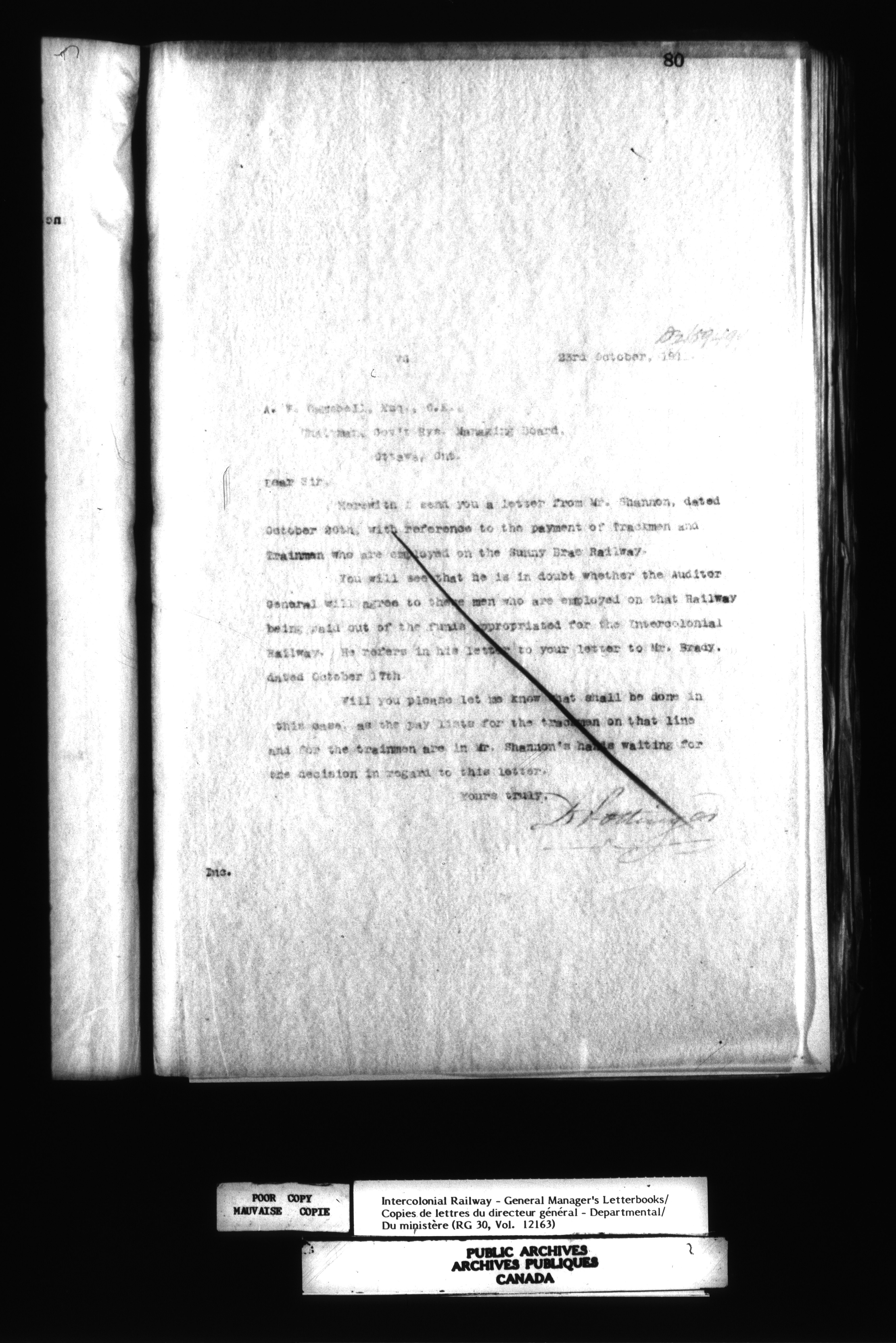 Canadian Government Railways : Office of the General Manager, Outward correspondence with Department of Railways and Canals, 1893-1913 - 12495