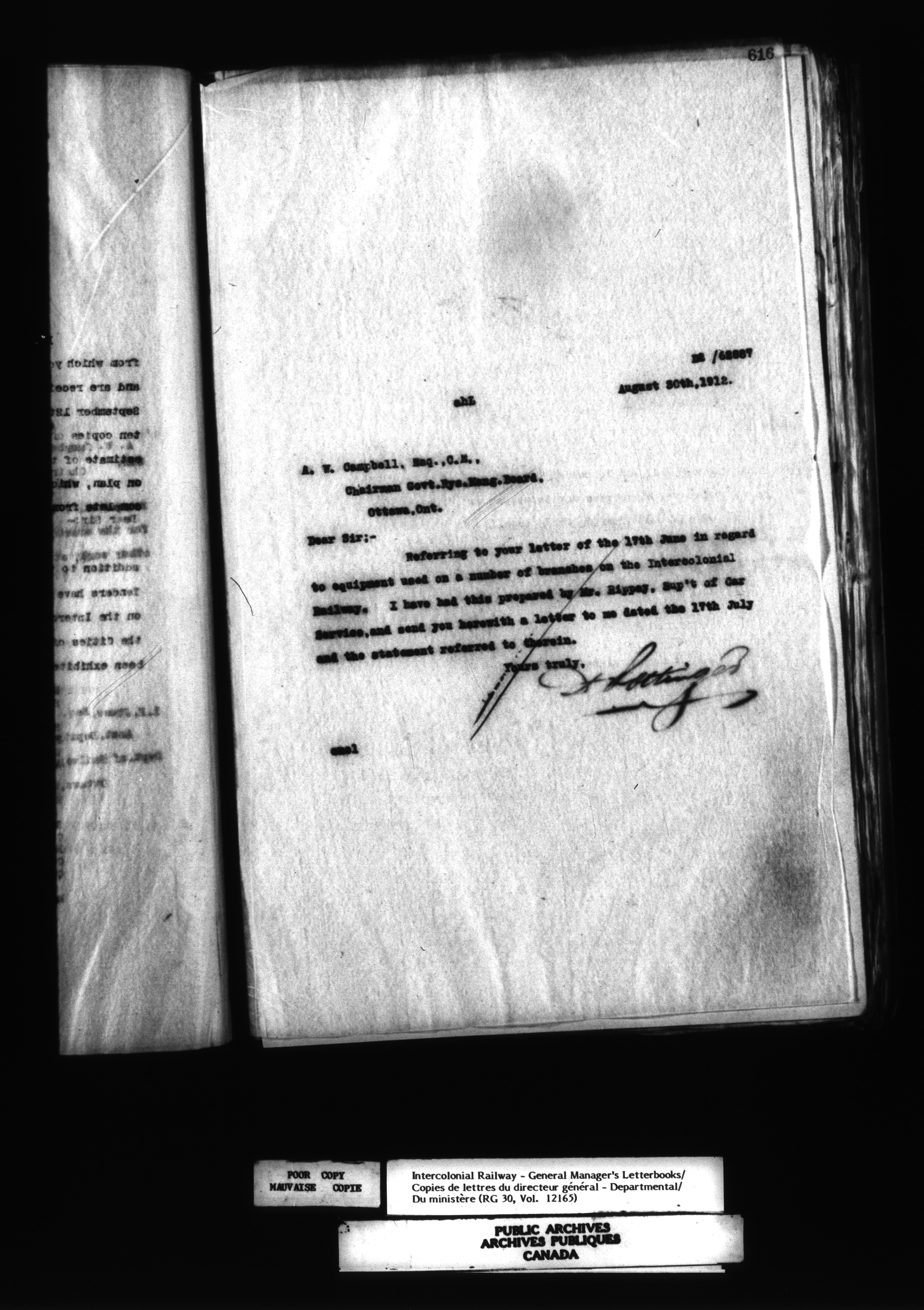 Canadian Government Railways : Office of the General Manager, Outward correspondence with Department of Railways and Canals, 1893-1913 - 12496
