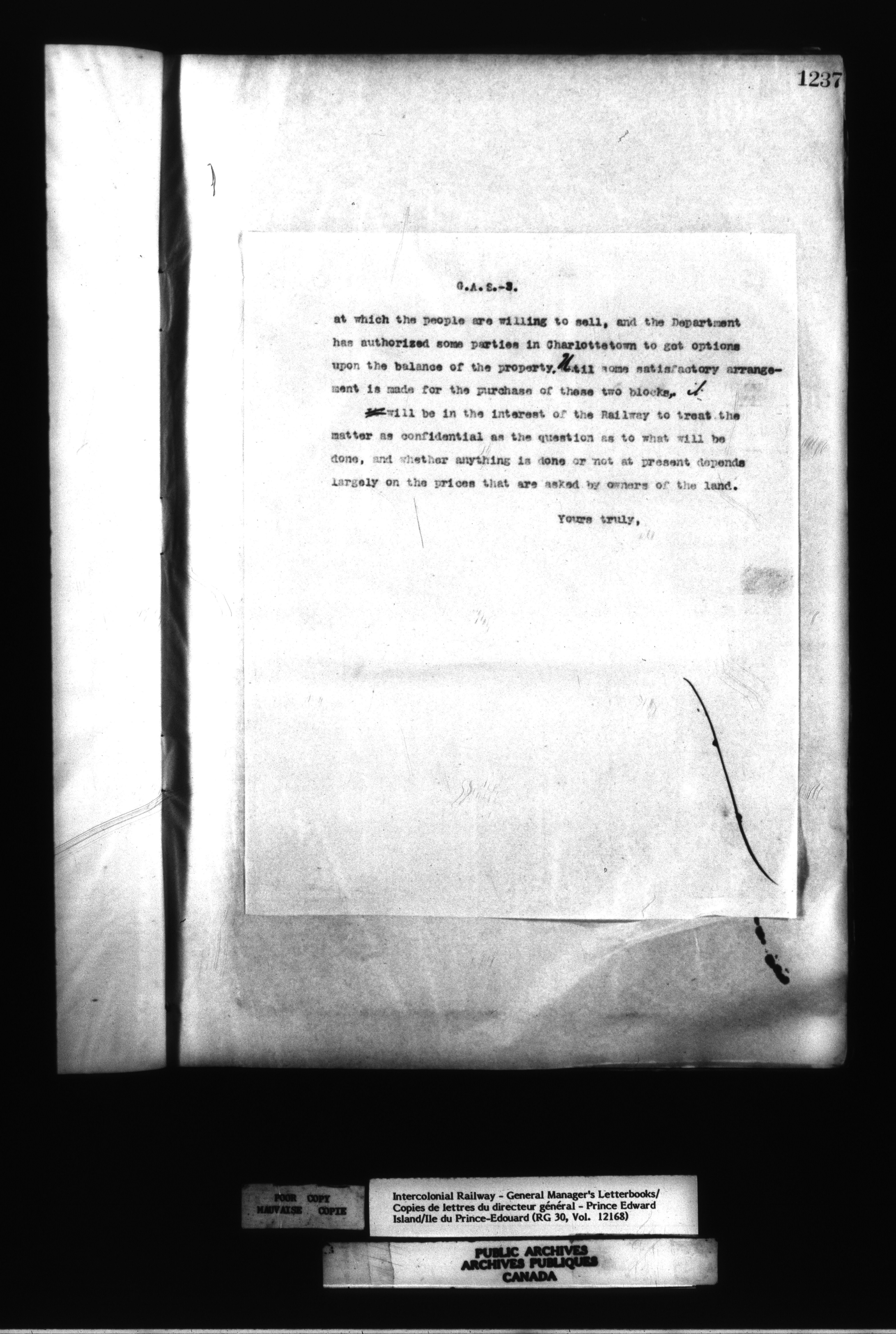 Canadian Government Railways : Office of the General Manager, Outward correspondence - 12500