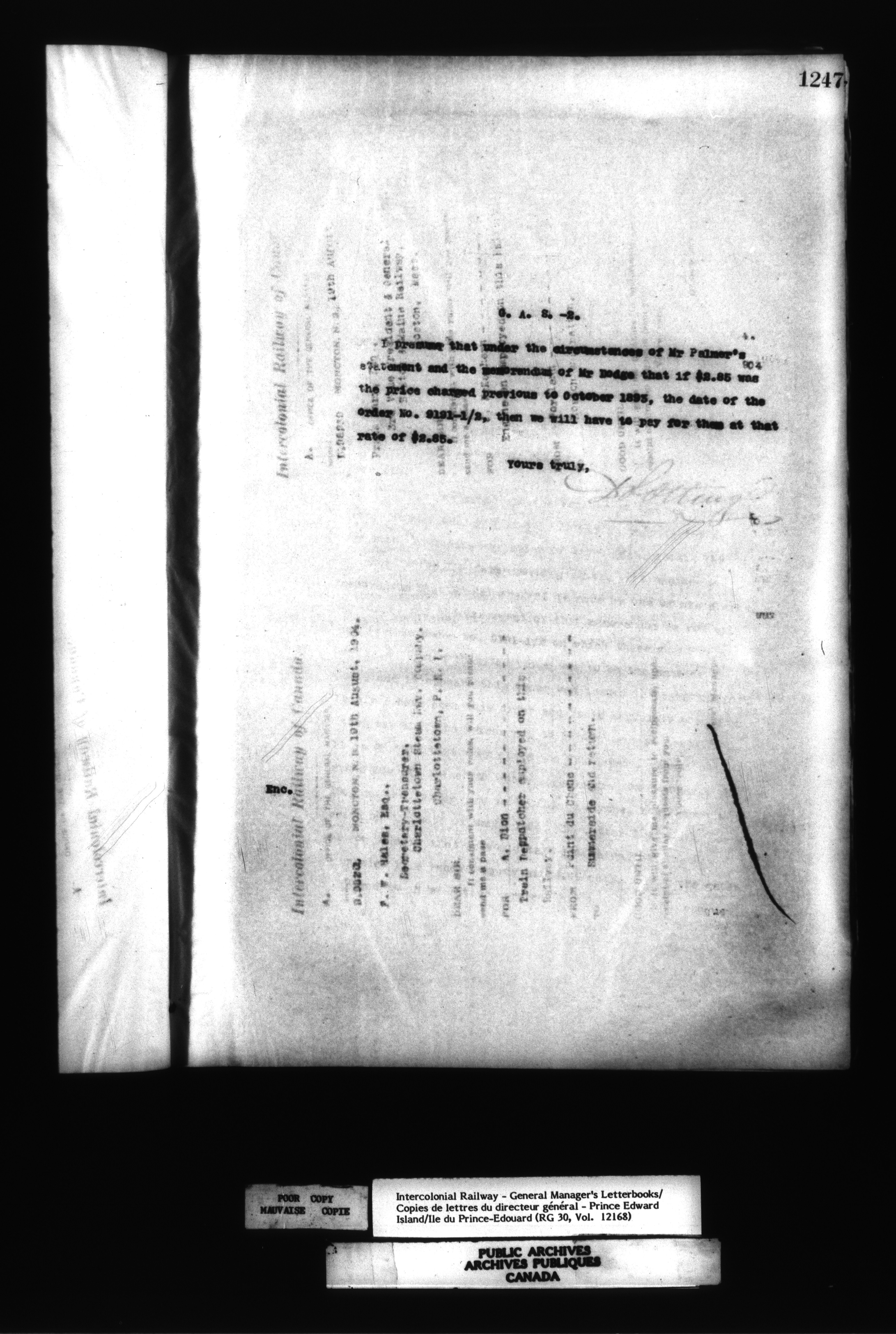 Canadian Government Railways : Office of the General Manager, Outward correspondence - 12500