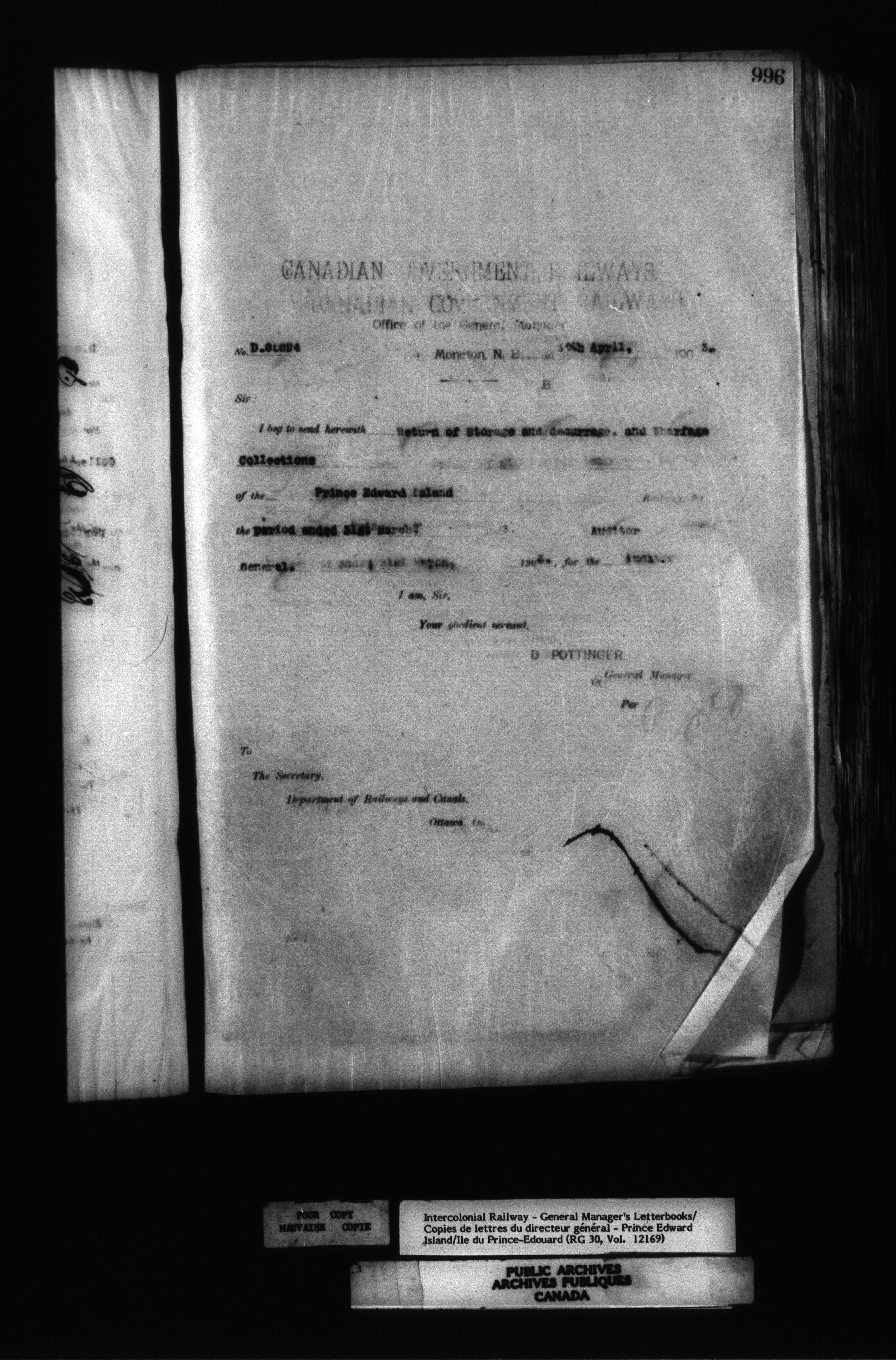 Canadian Government Railways : Office of the General Manager, Outward correspondence - 12501