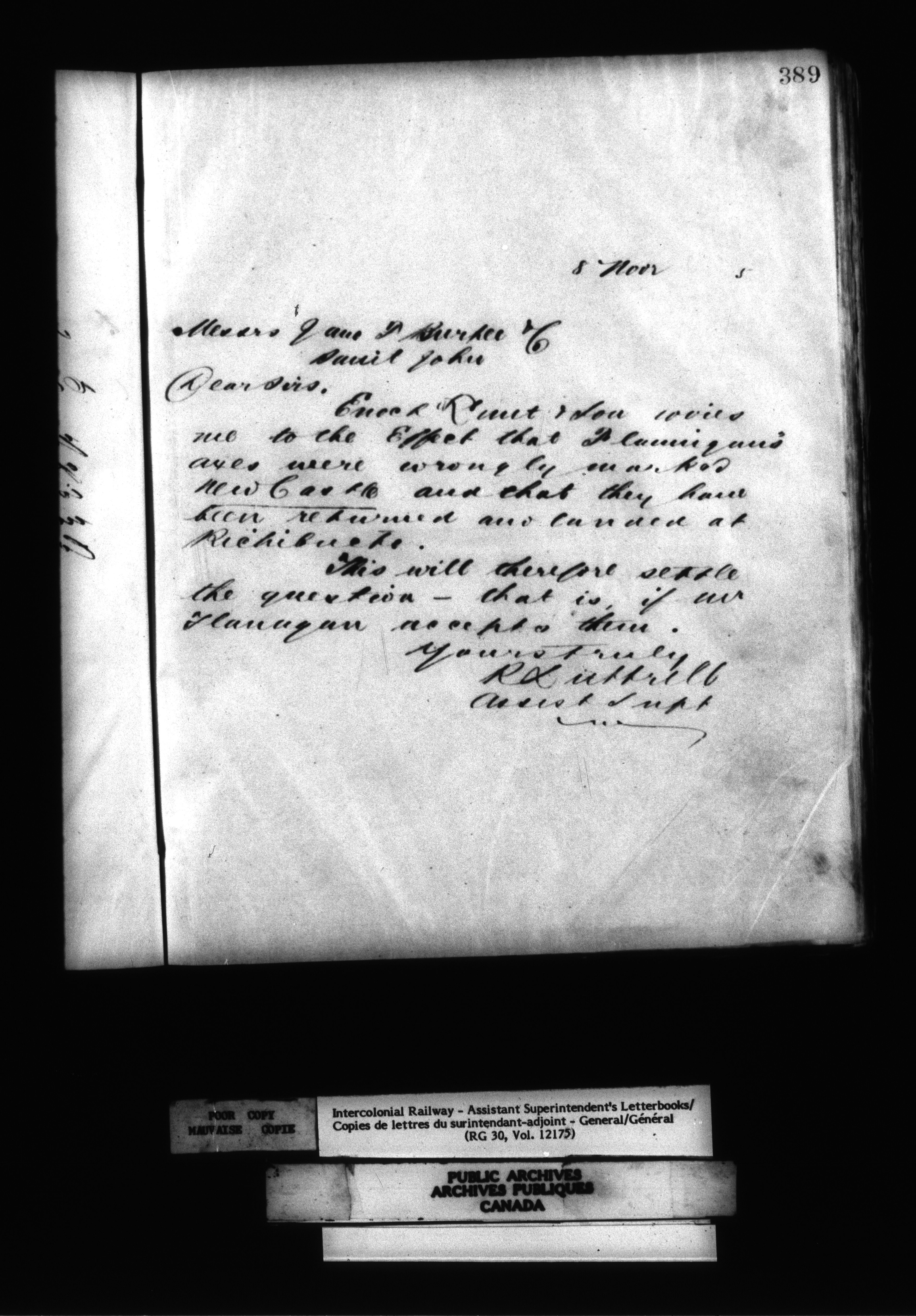 Canadian Government Railways : Office of the Chief Superintendent, Outward correspondence : C-12503
