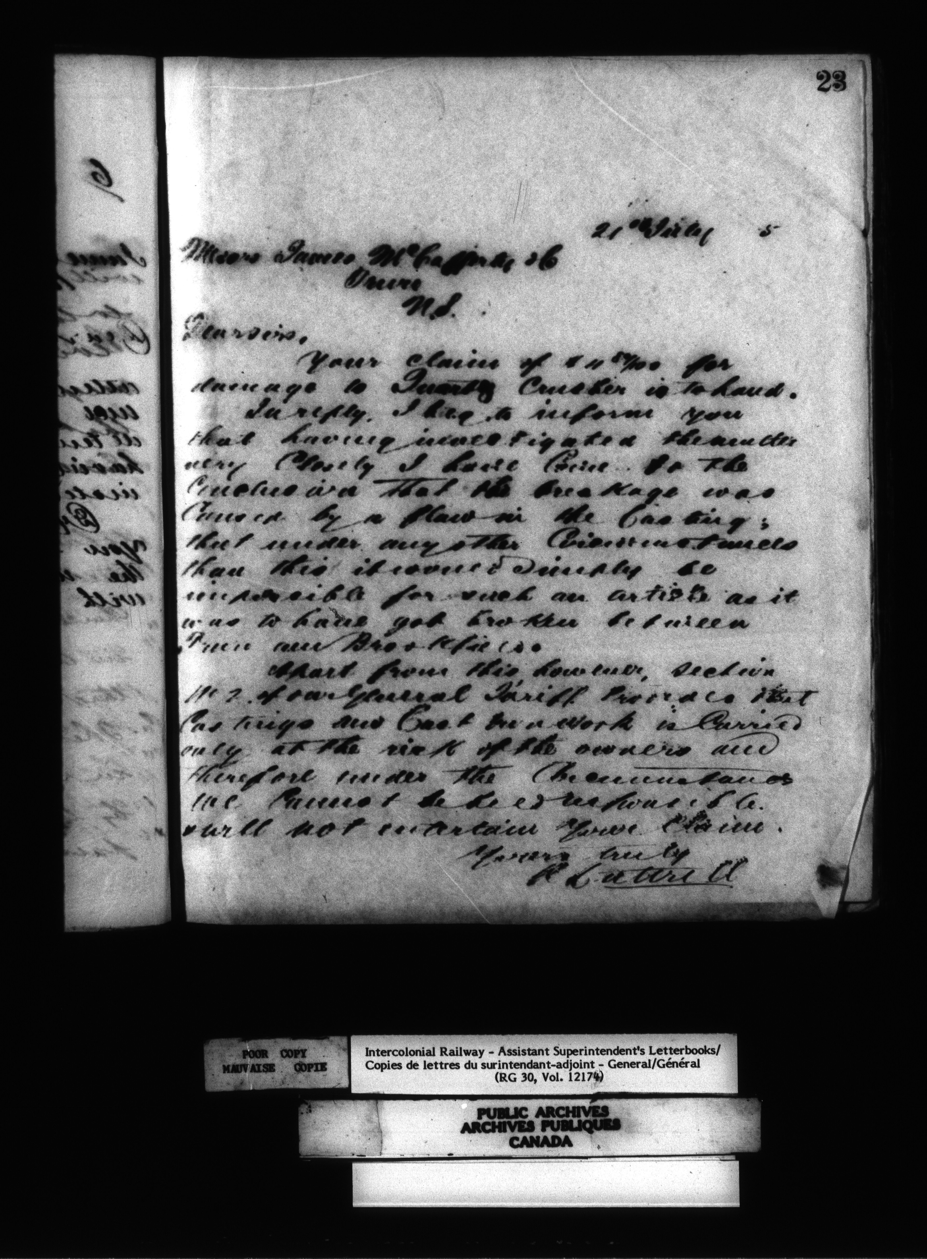 Canadian Government Railways : Office of the Chief Superintendent, Outward correspondence : C-12503