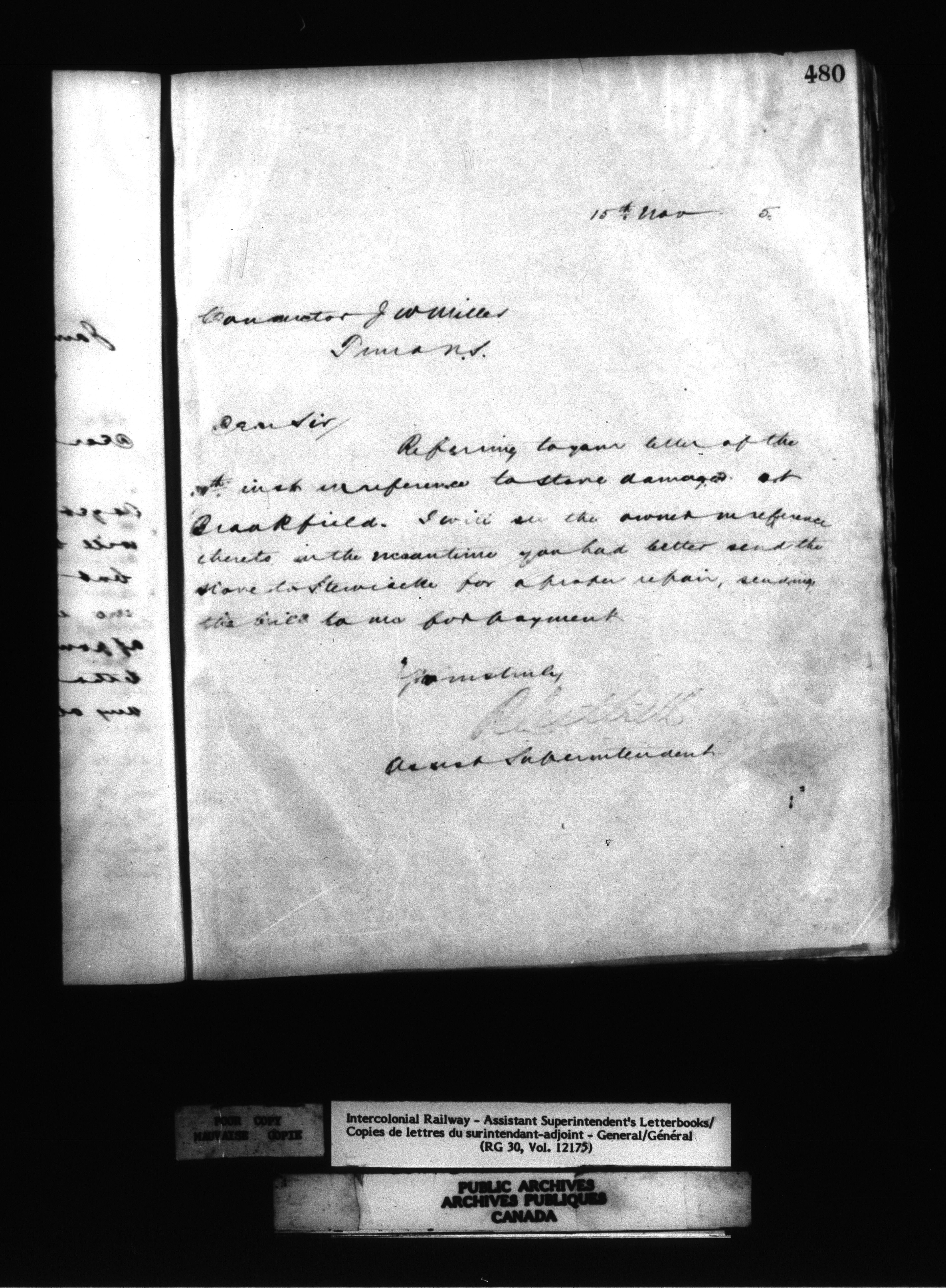 Canadian Government Railways : Office of the General Manager, Outward correspondence - 12504