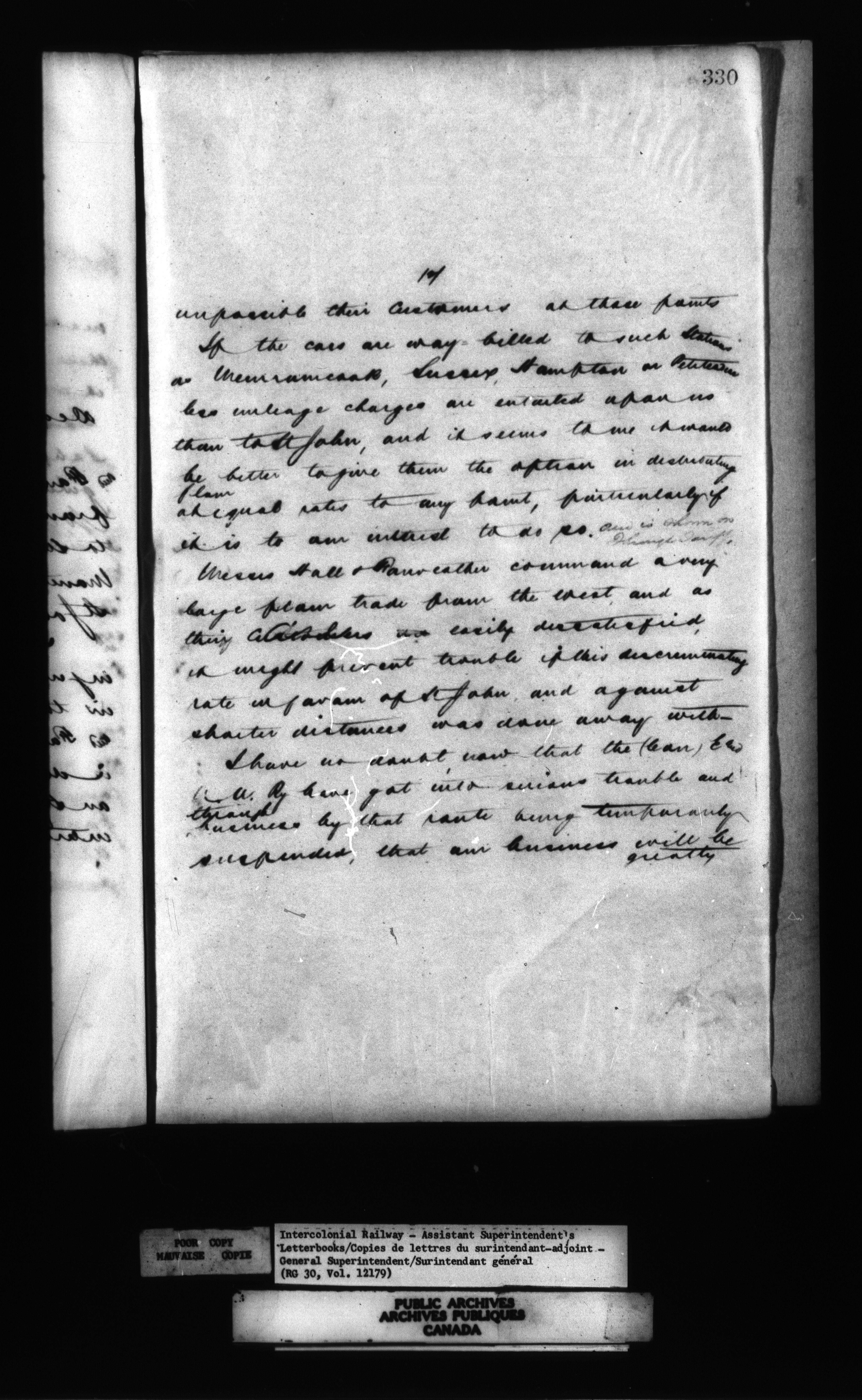 Canadian Government Railways : Office of the Chief Superintendent, Outward correspondence : C-12505