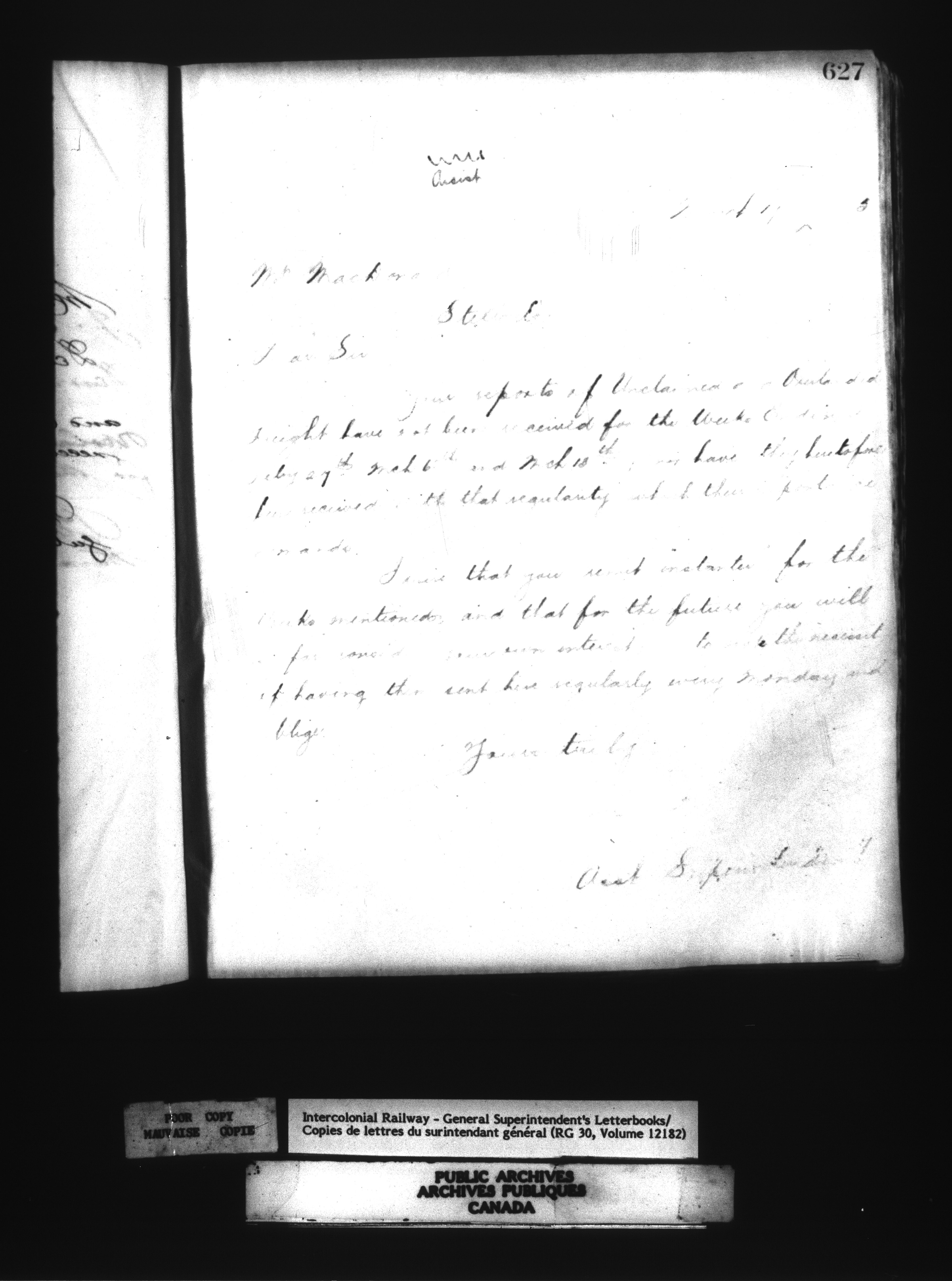 Canadian Government Railways : Office of the Superintendent, Correspondence - 12508