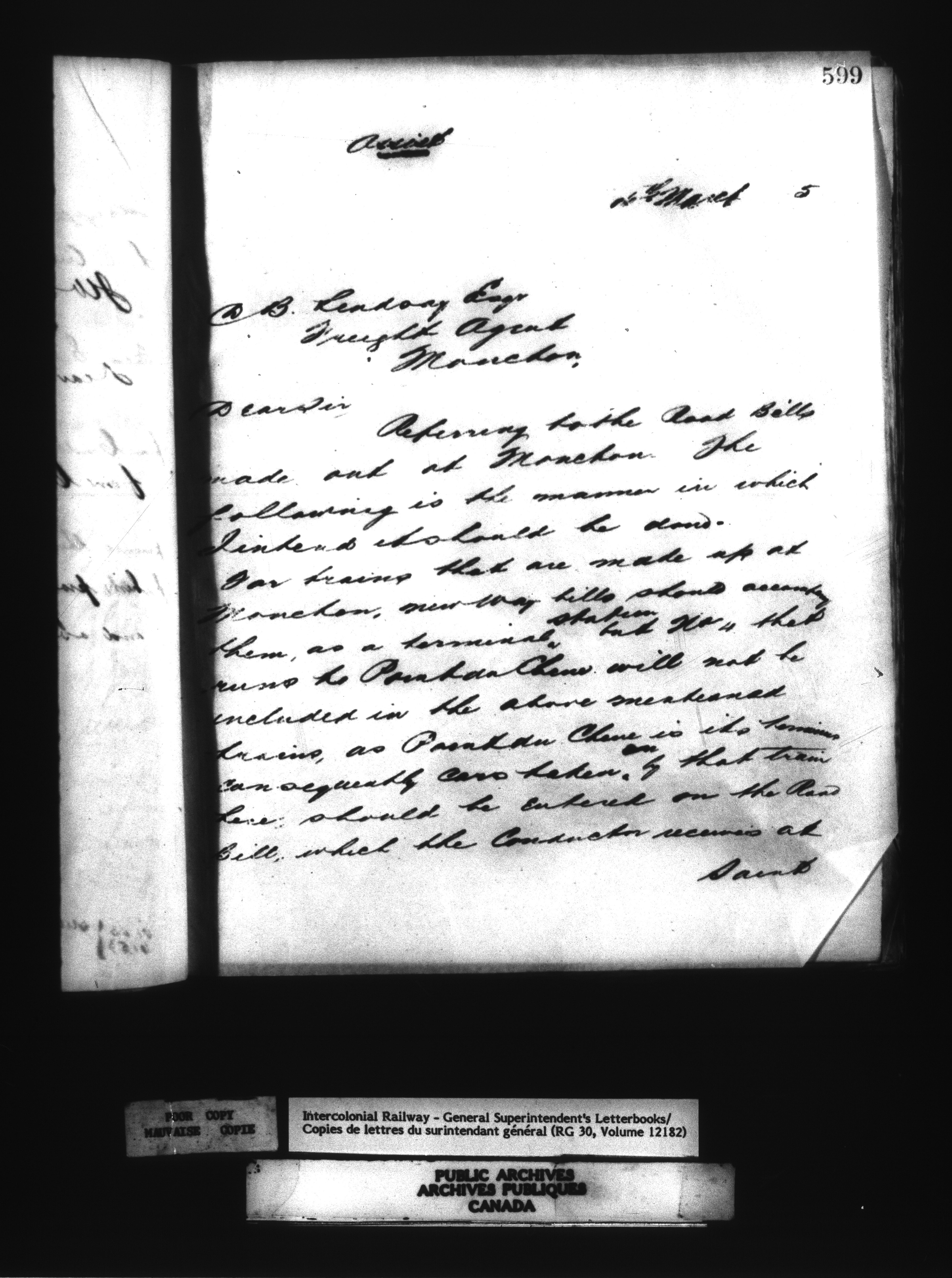 Canadian Government Railways : Office of the Superintendent, Correspondence - 12508